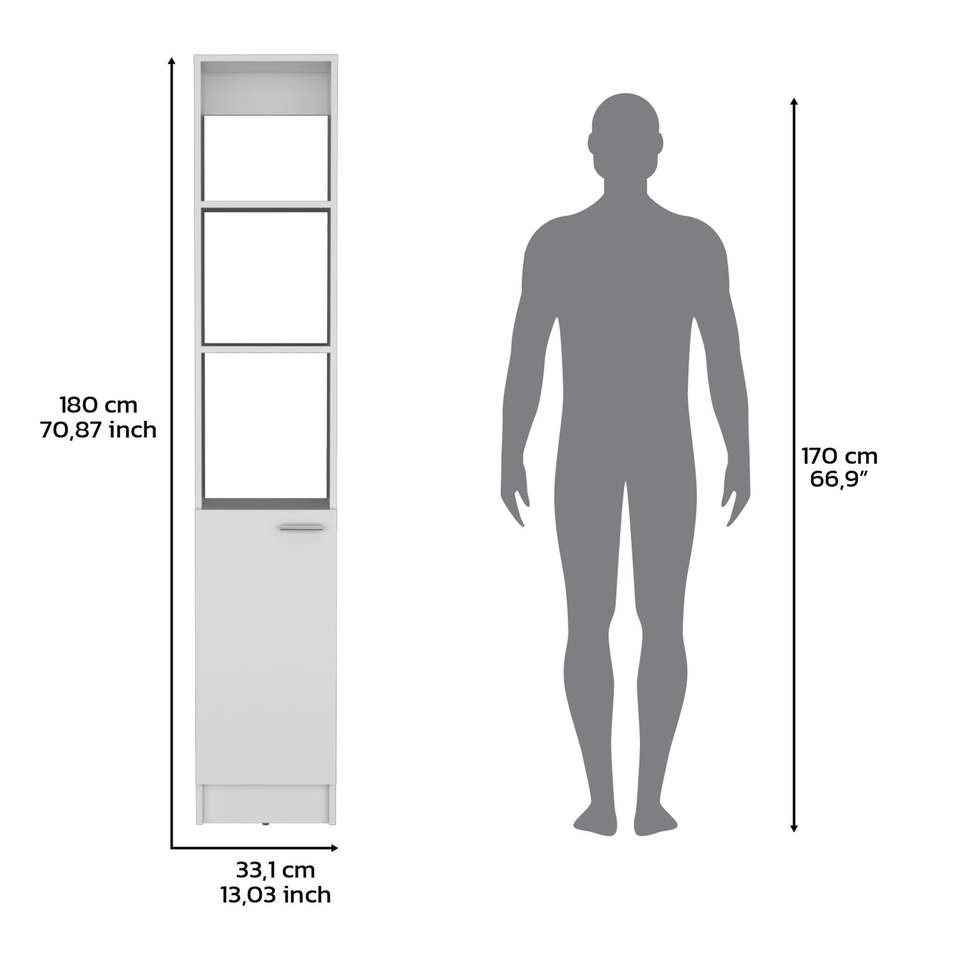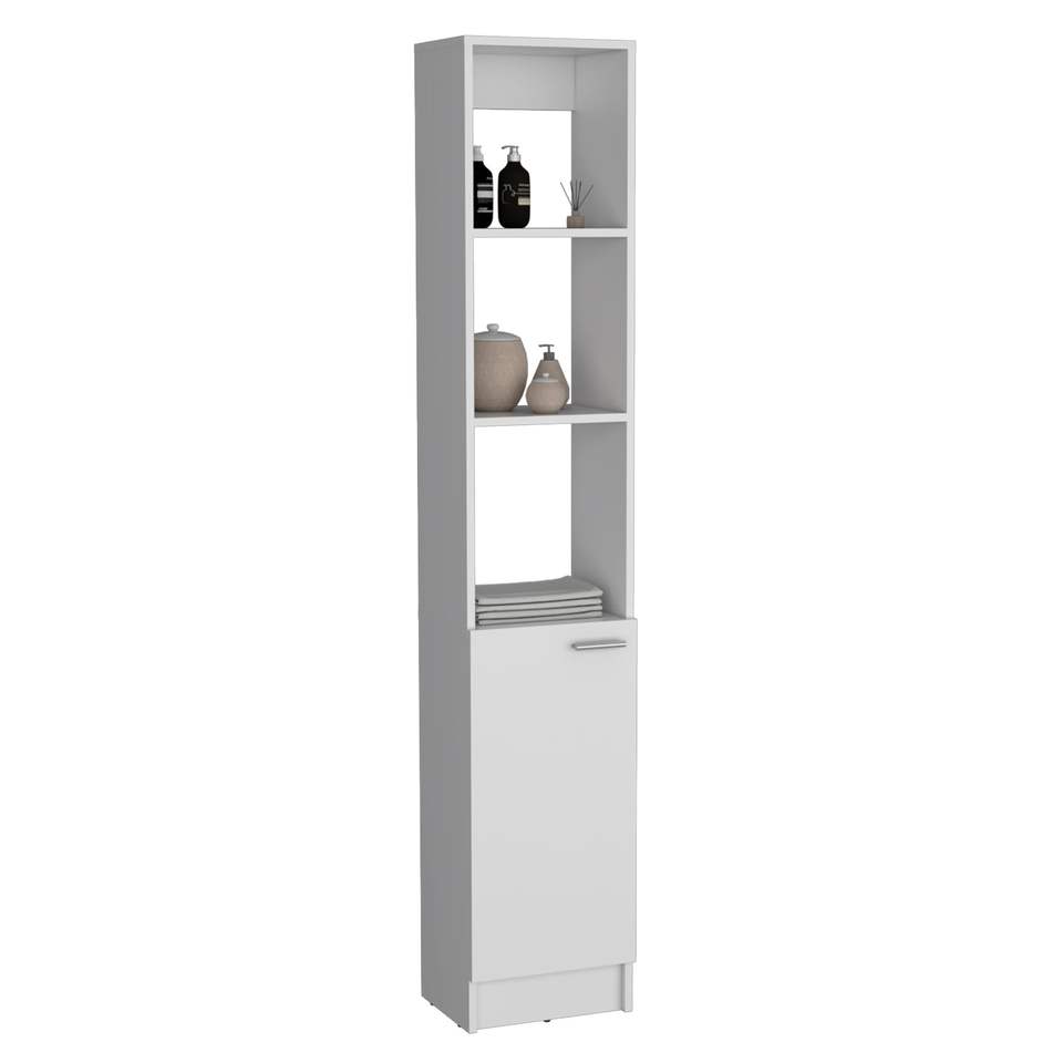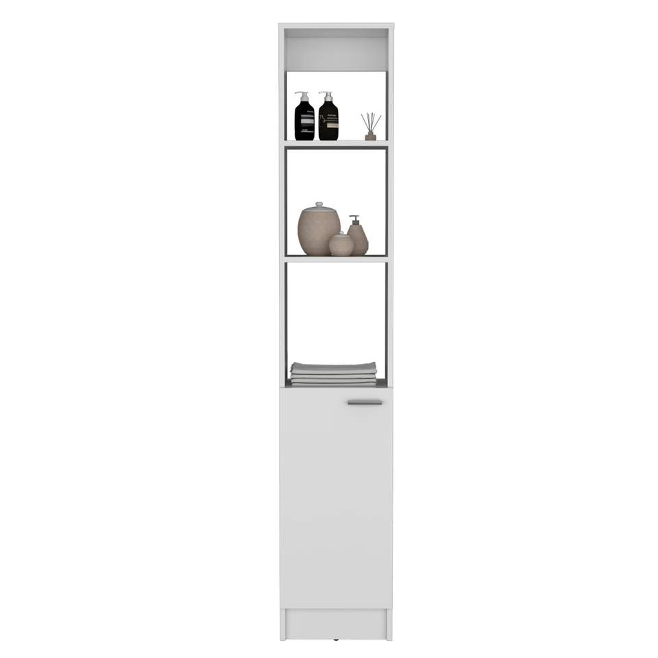 Armadio per biancheria a 1 anta con 6 ripiani, ripiani da bagno bianchi
