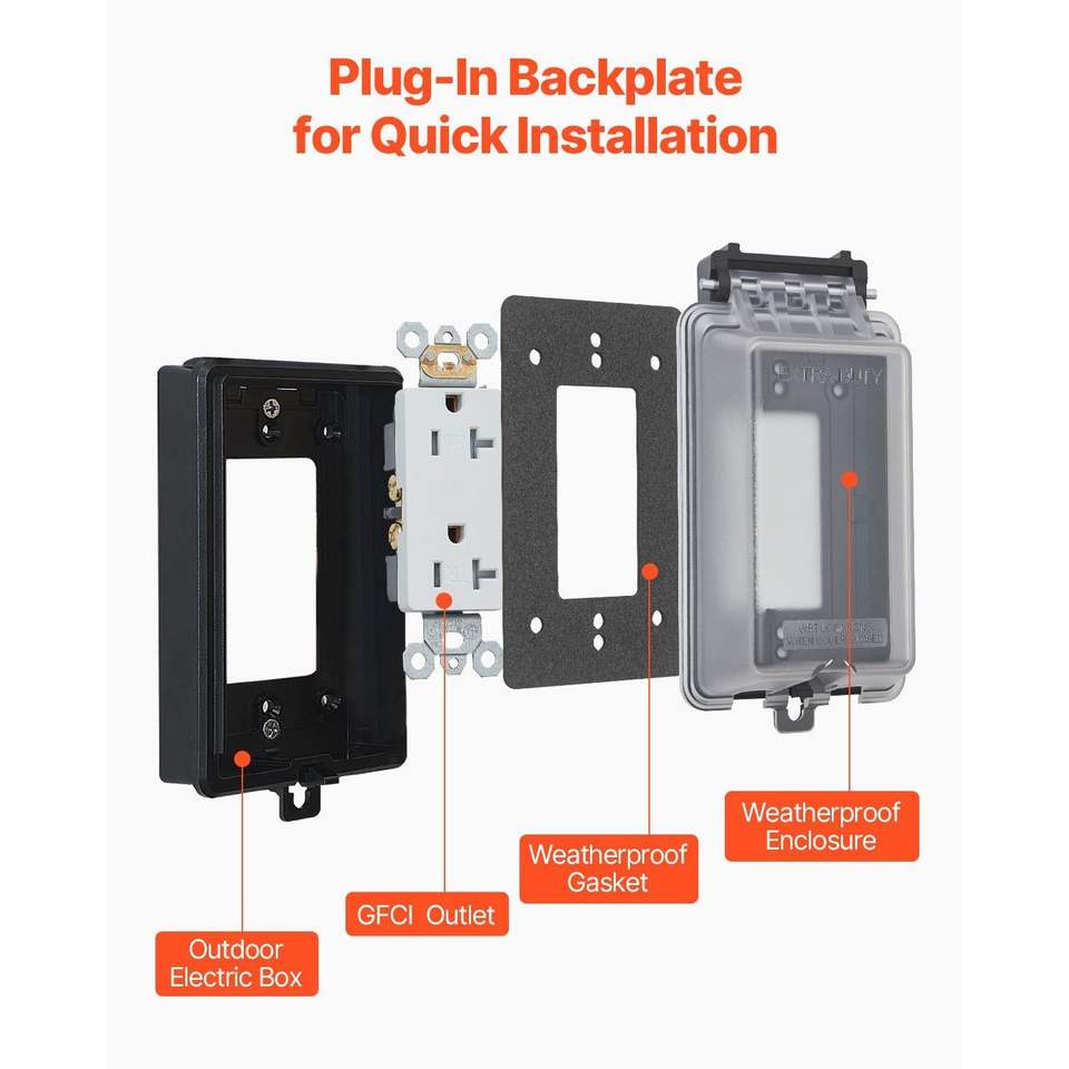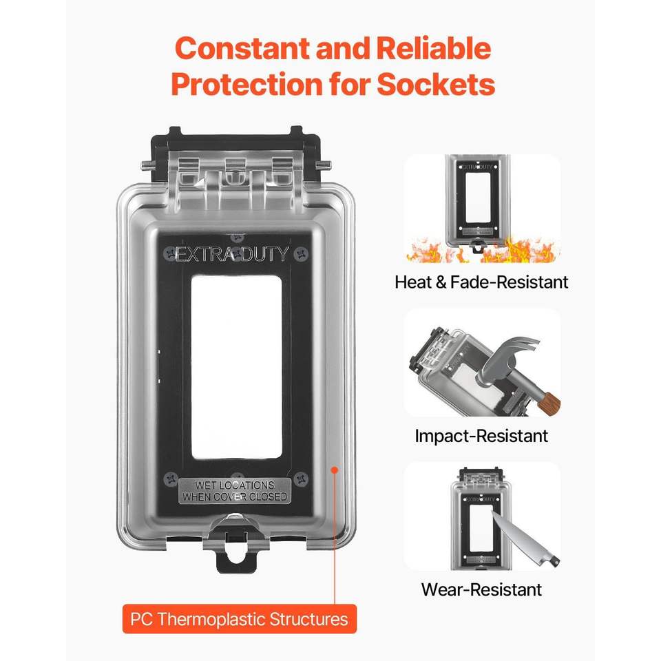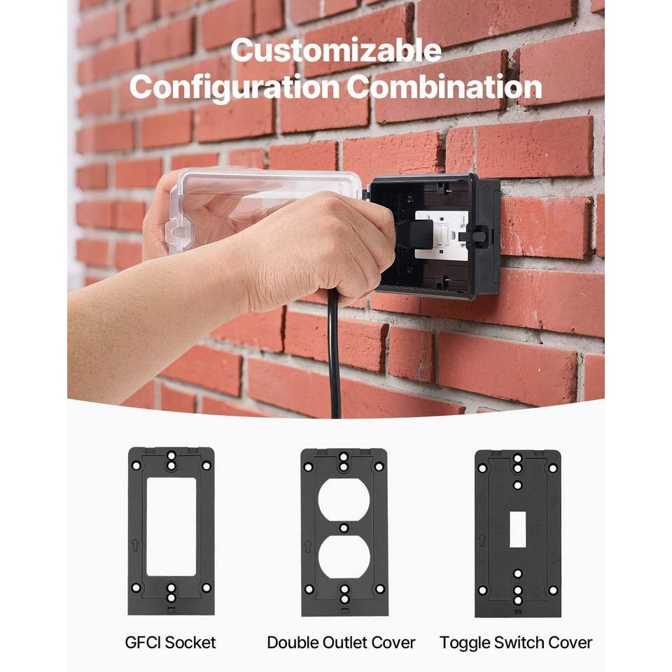 Copertura per Presa Elettrica Esterna 6-in-1 in PC ad Alta Resistenza, Design Bloccabile, con Griglia e Ventilazione, 1 Modulo