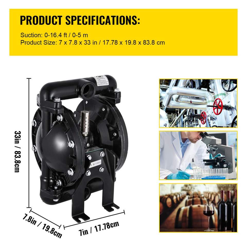 Pompa a Doppia Membrana Pneumatica in Alluminio con Ingresso e Uscita da 1 Pollice, 24 GPM Max, 120 PSI, per Uso Industriale