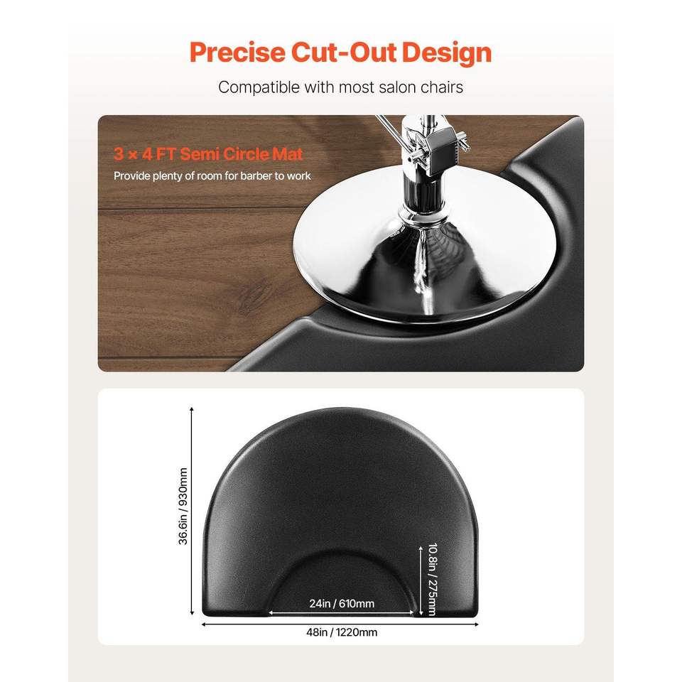 1-Inch Thick Semicircle Salon Chair Mat 3 X 4 FT Stylist Hair Stylist Furniture