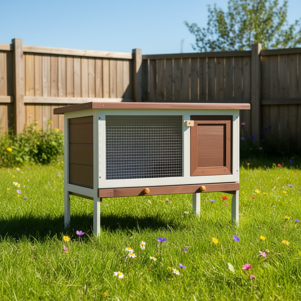 Casetta per Conigli da Esterno in Legno, Arredamento per Animali Domestici, Classica Rettangolare di Media Dimensione, Resistente, Per Tutte le Stagioni, Montaggio Richiesto