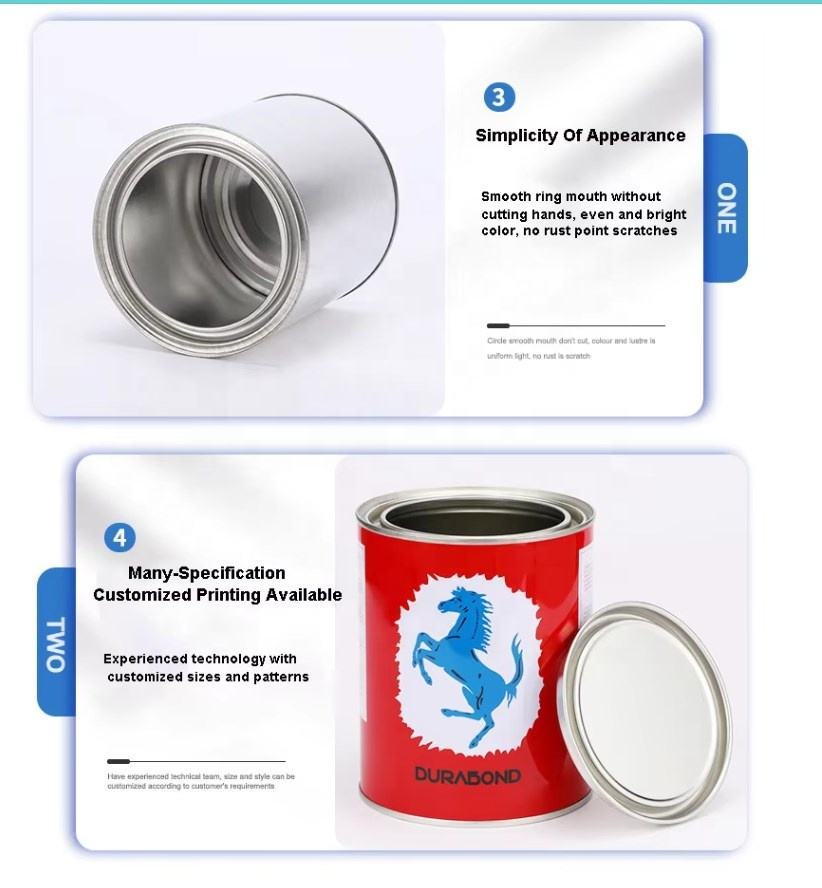 1 Liter Metal Round Tin Can Clear Paint Cans with Lids Body Welding Empty Paint Buckets 1L/Gallon Factory Direct