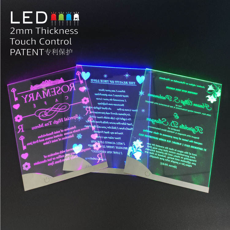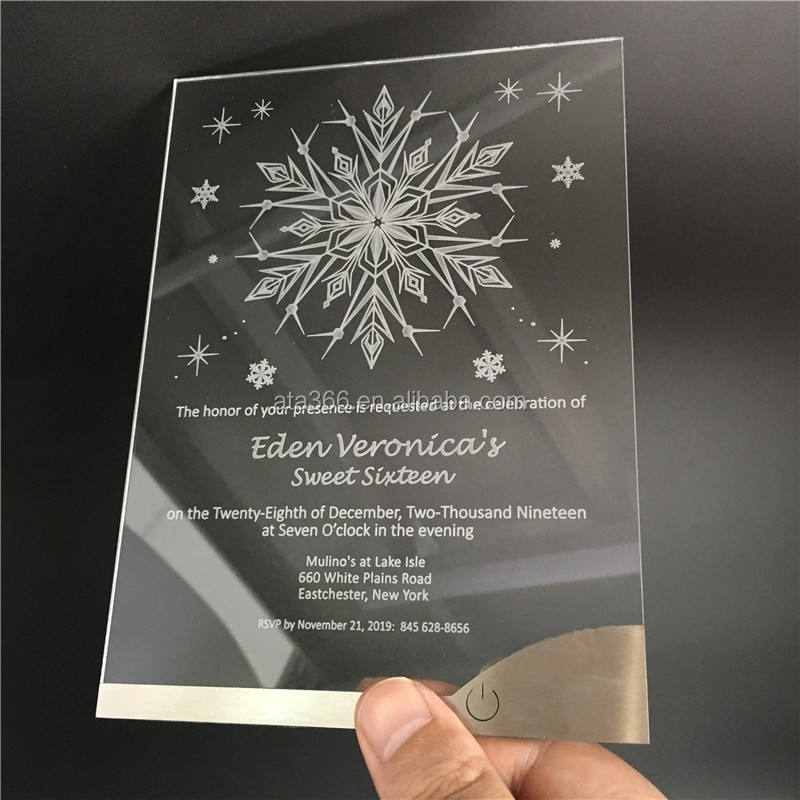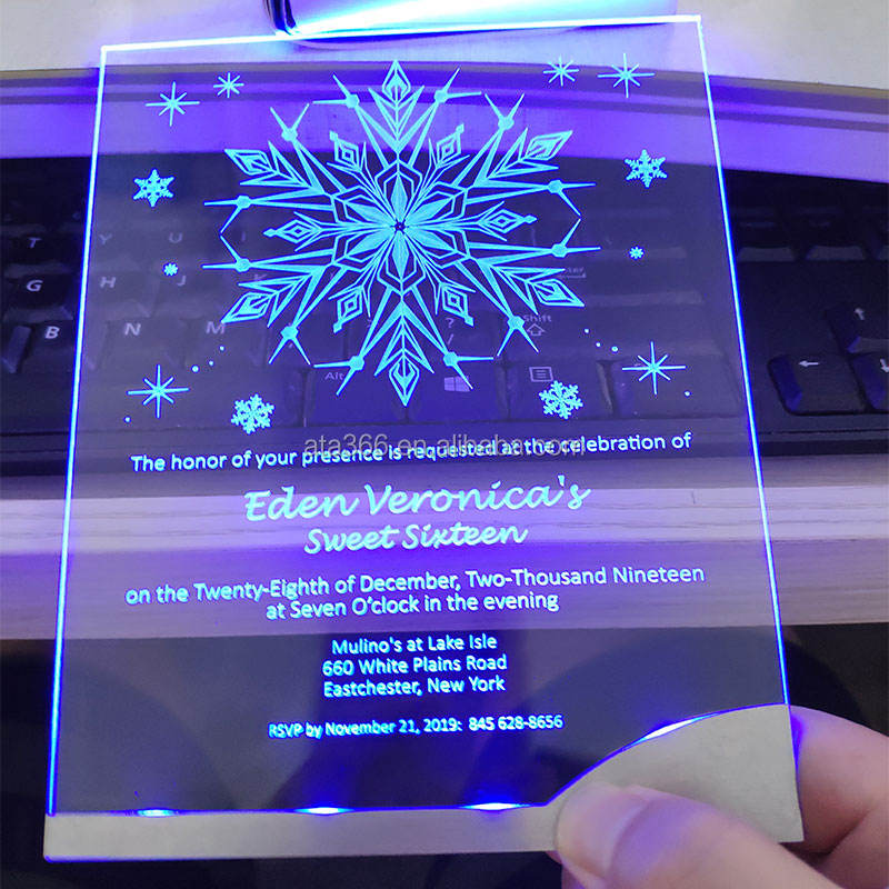 Biglietto d'invito di lusso a LED personalizzato, unico, in acrilico luminoso, con busta e scatola, invito nuziale tagliato al laser