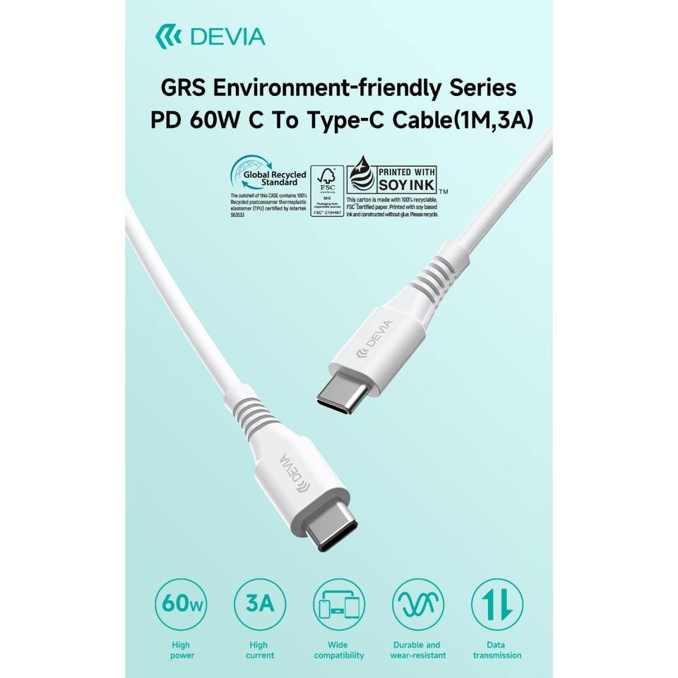 1 metro GRS certificato tipo C a C 60W 3A PD cavo veloce 5A ricarica trasferimento dati con Micro-USB porte di tipo C confezionate in scatola