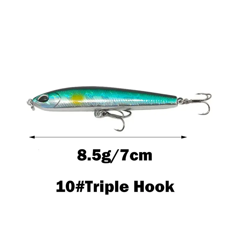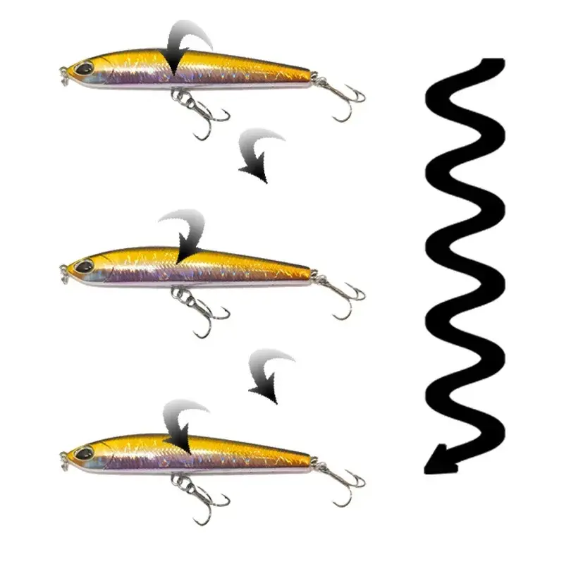Esca a matita affondante: Progettato come esca a matita affondante, raggiunge efficacemente la profondità desiderata nell'acqua, rendendolo ideale per i pesci che si nutrono sul fondo.