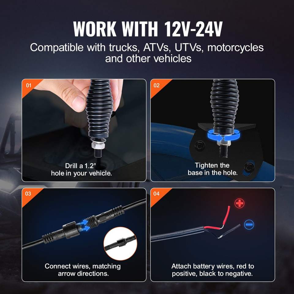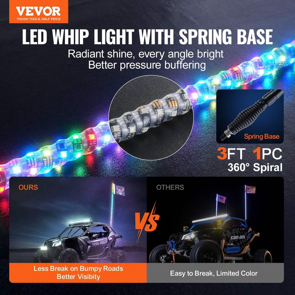 1 Pezzo Luce a Frusta da 3 Piedi con Base a Molla, LED Impermeabile RGB a 360 Gradi con Effetto Inseguimento, Controllo Remoto tramite APP per Fuoristrada
