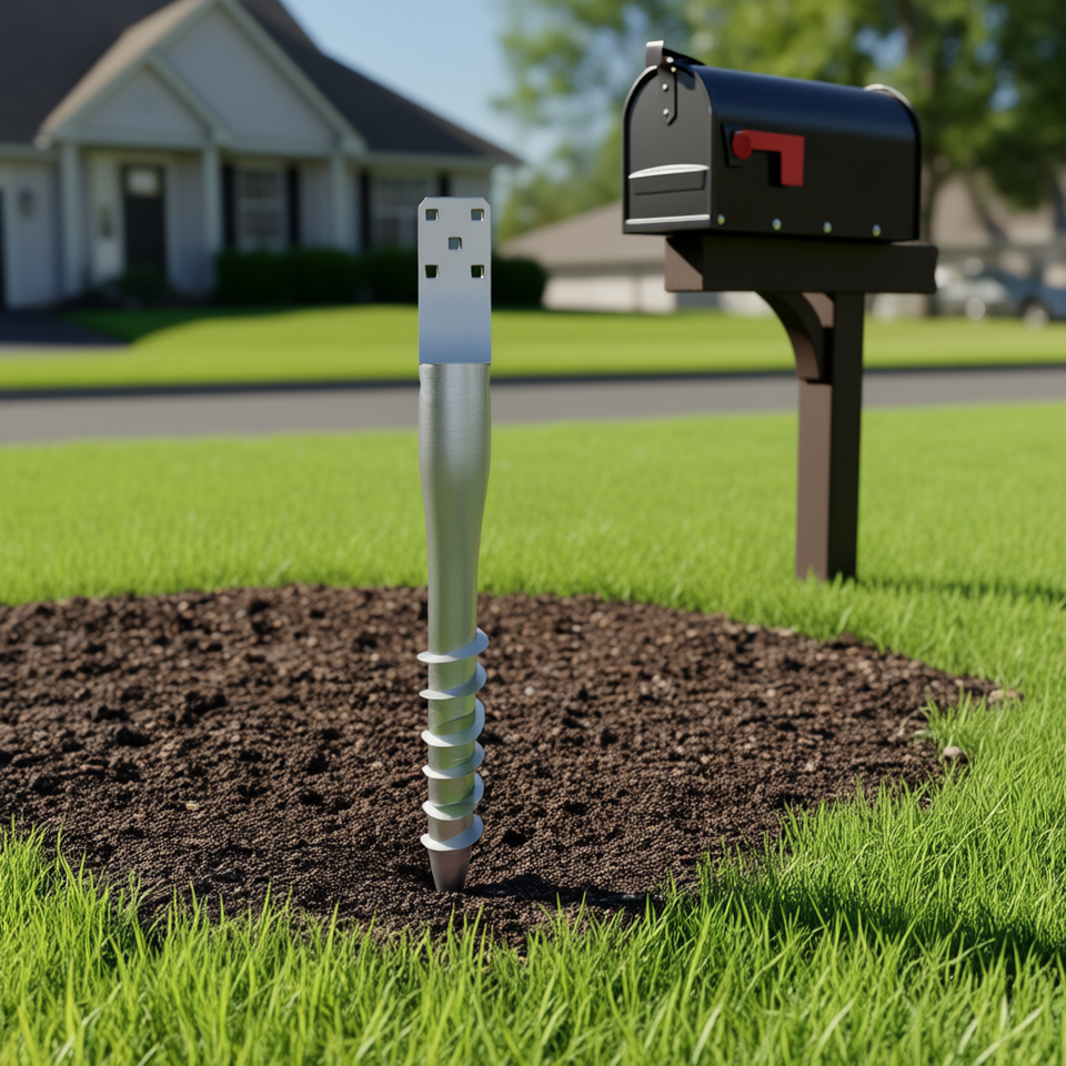 No-Dig Ground Anchor 3.94 X 2.76 X 27.56 Inch Screw Post Stake For Mailbox With 6 Lag Bolts Rebar U-Shape Steel Holder