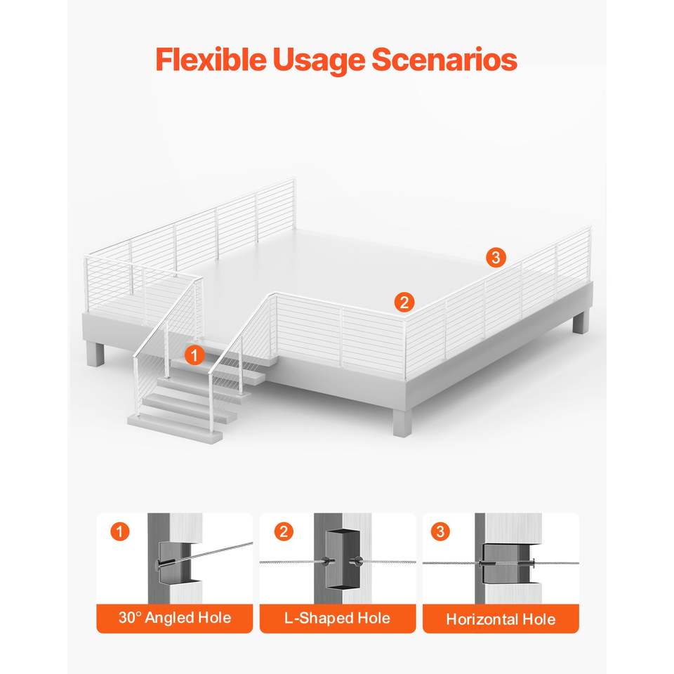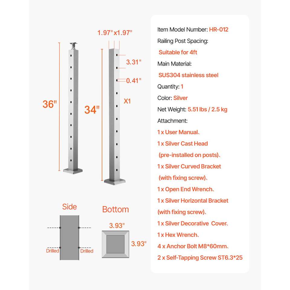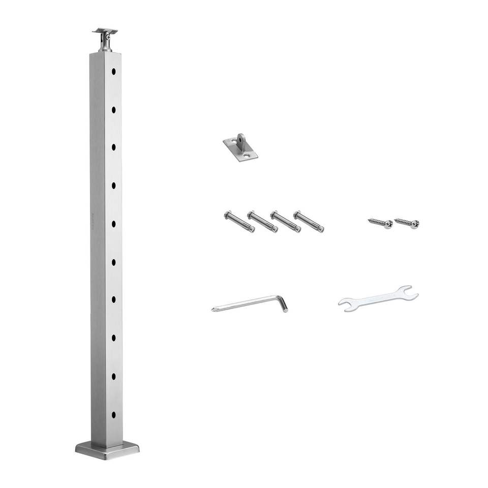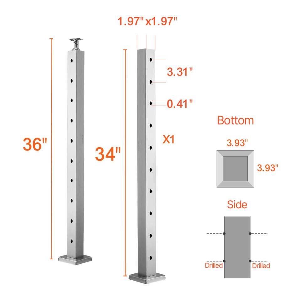 Palo per Ringhiera in Acciaio Inox con Fori Orizzontali 36x2x2, Confezione da 1, con Fori Pre-Forati per Componenti Scale
