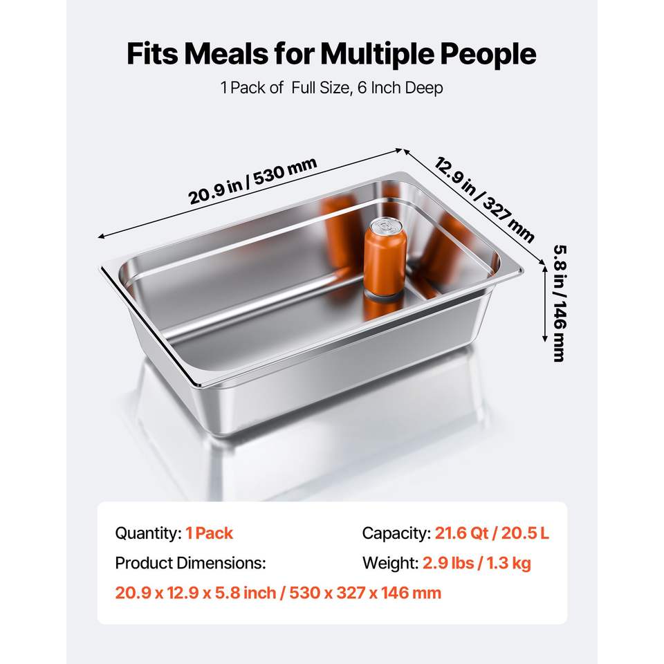 1 Confezione di Teglie Professionali in Acciaio Inox per Cottura a Vapore, Profondità 6 Pollici, Antiaderenti, Riutilizzabili, Antiruggine, per Catering, Hotel e Ristoranti