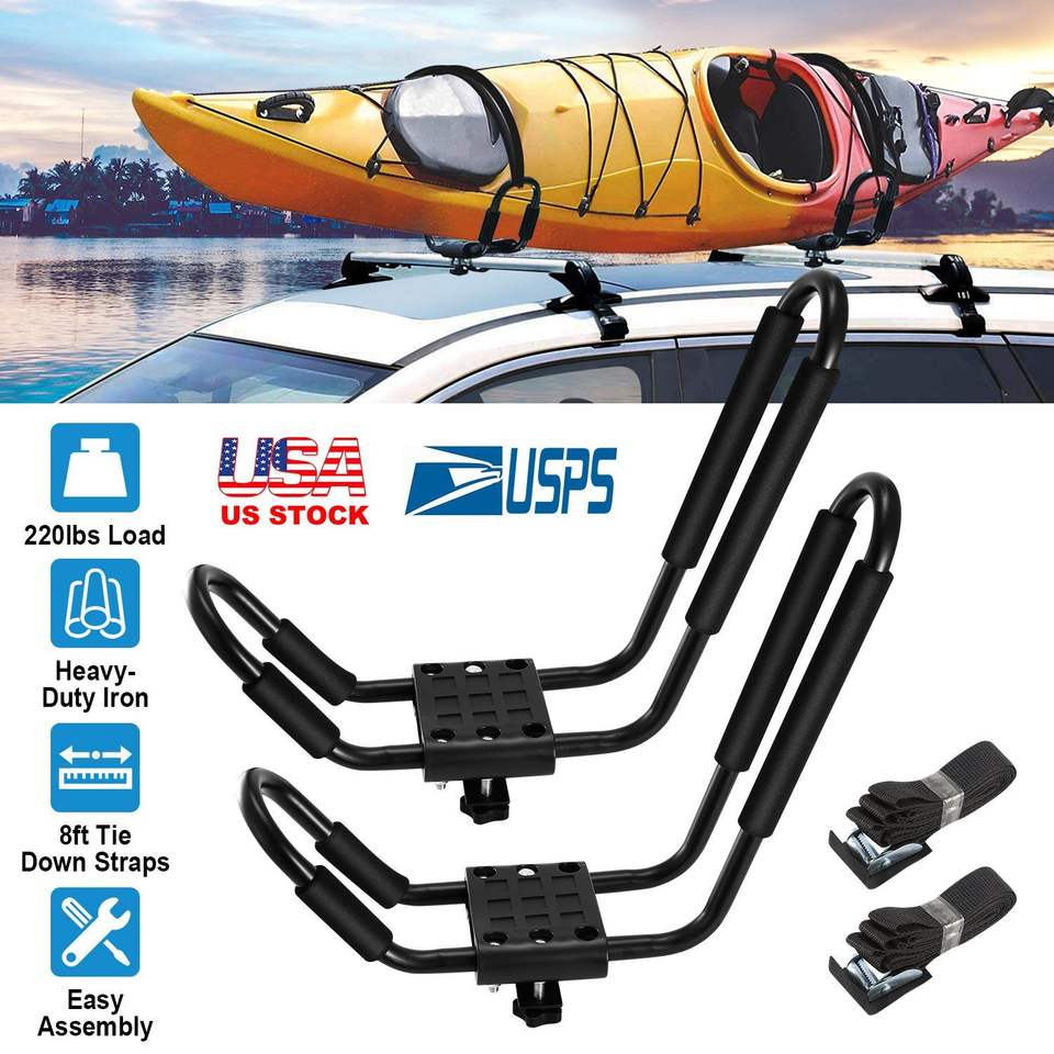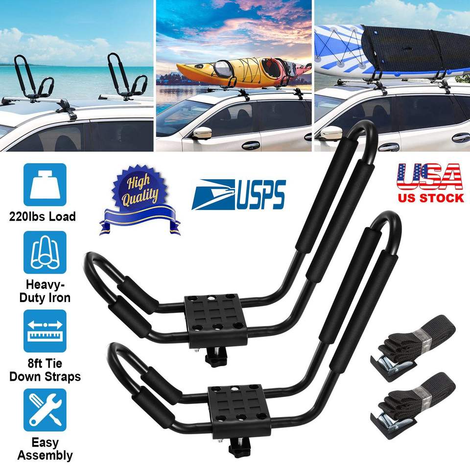 1 Paio di Supporti Universali a J per Kayak, Capacità di Carico 220 LBS, Portapacchi per Canoa, 2 Cinghie di Fissaggio, Montaggio sul Tetto dell'Auto