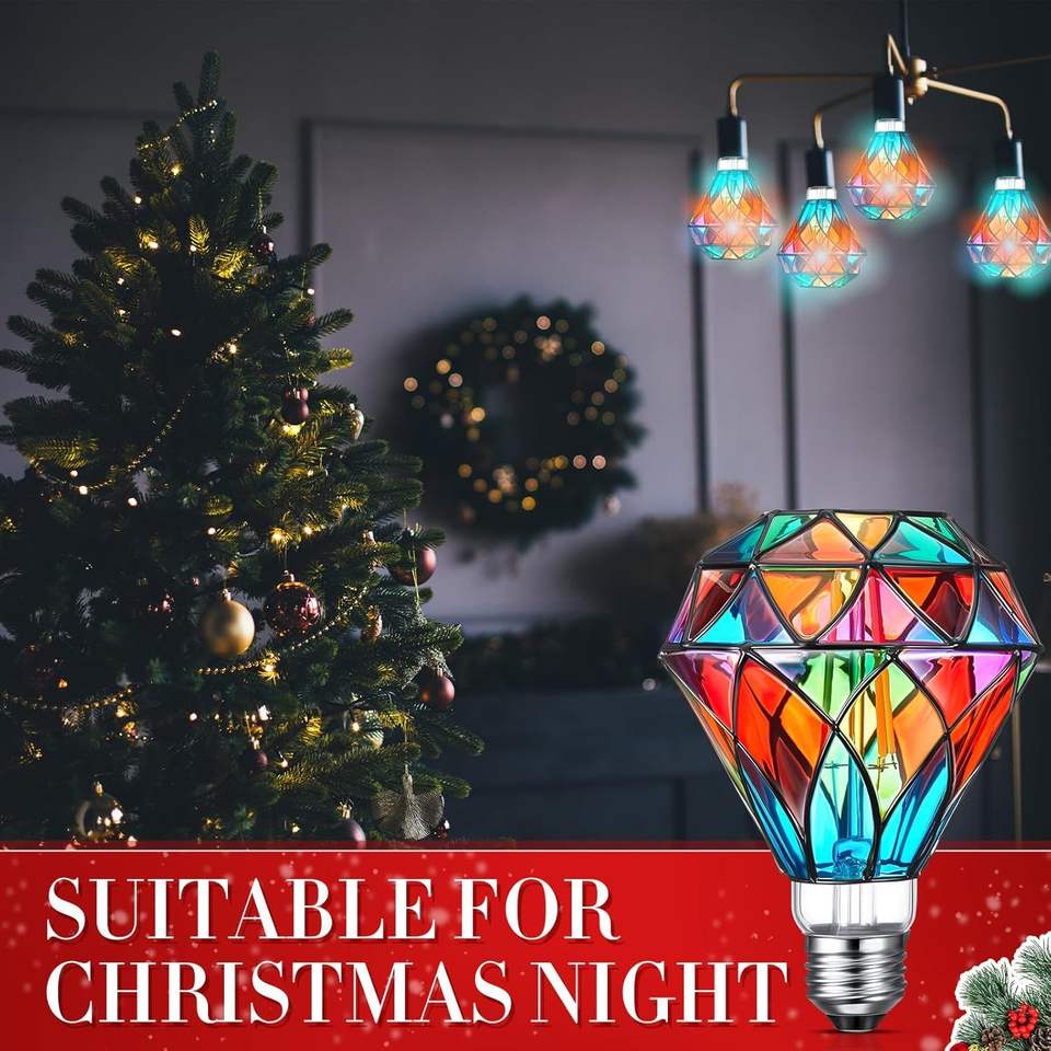 1 Pezzo Lampadina LED in Vetro Colorato a Forma di Diamante G95, Luce Tremolante Colorata per Casa, Balcone, Feste, Base E26 A60 6 Watt
