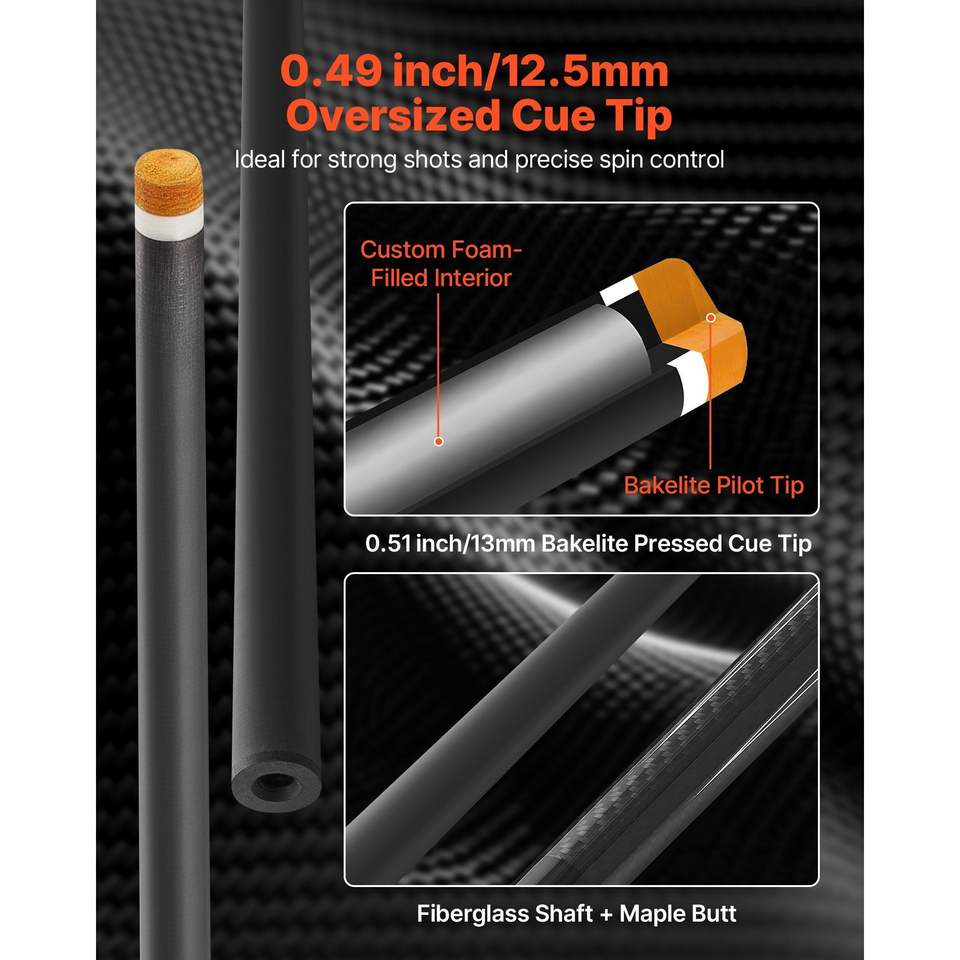 Stecca da Biliardo in Fibra di Carbonio da 58 Pollici, 19 Oz, con Punta in ABS Pressato in Bachelite, per Snooker e Biliardo