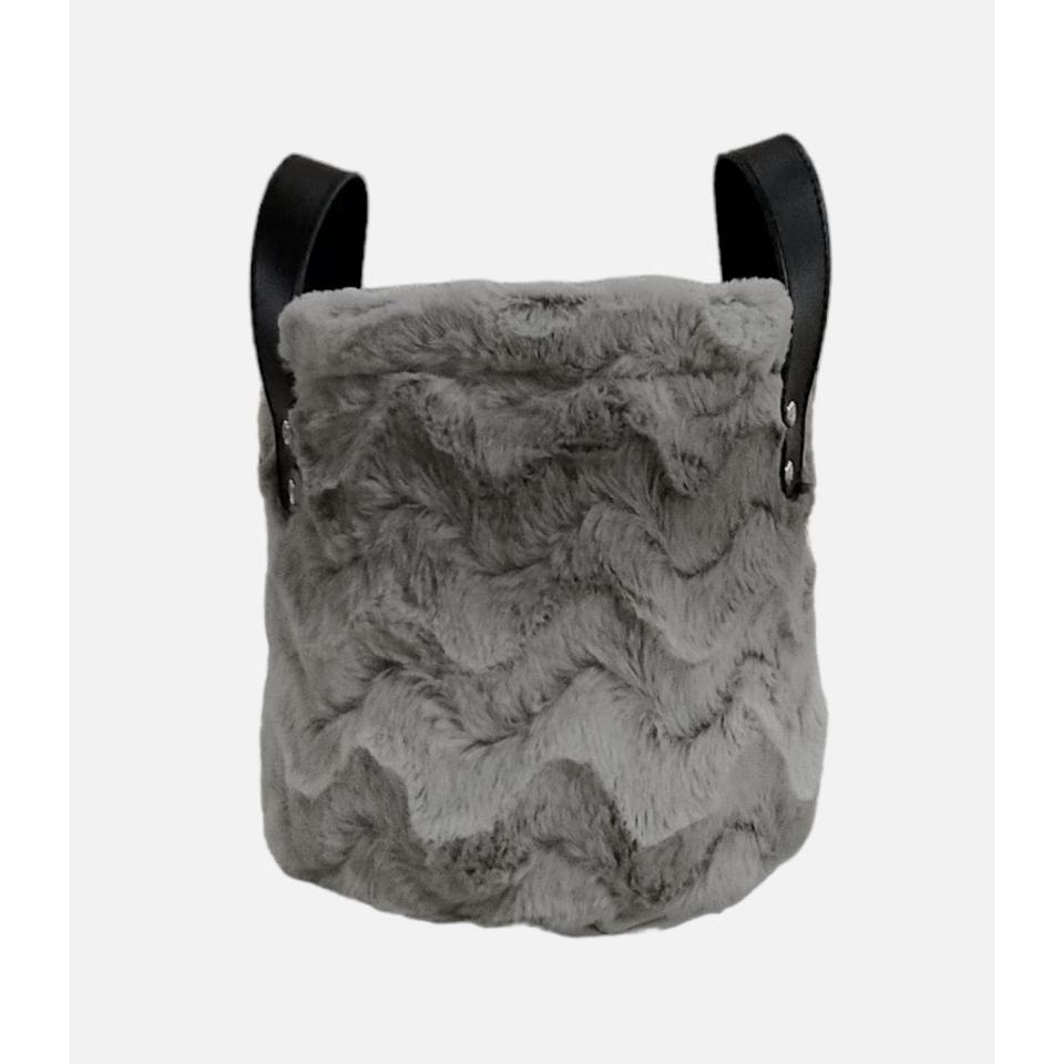 Cesto rotondo in peluche grigio con manici, 24 x 24 cm