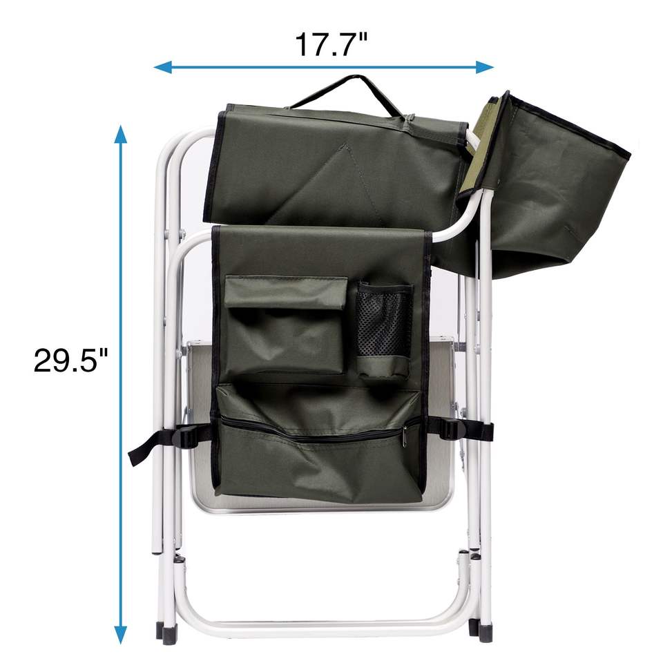 1-Piece Lightweight Oversized Green Directors Chair Padded Folding Design for Indoor Outdoor Camping Fishing Side Table Storage