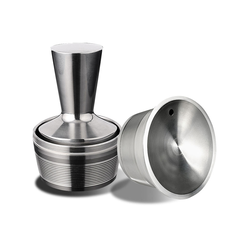 Set di Capsule di Caffè Ricaricabili Universali in Acciaio Inox, 1 Capsula 1 Tamper, Vendita Calda