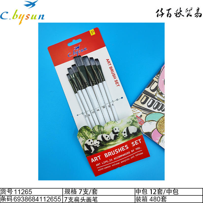 1 Set of 7 Flat-tip Watercolor Brushes with Wood Handle Synthetic Nylon Hair 7 Pieces/SET