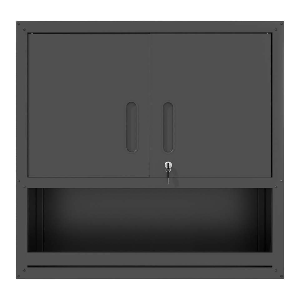 Armadietto Portautensili in Metallo da Parete con 1 Ripiano e 1 Cassetto Aperto, Porta con Serratura per Garage, Ufficio o Magazzino, Montaggio Richiesto