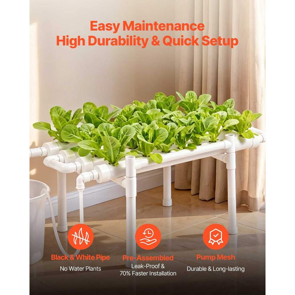 Kit Sistema di Coltivazione Idroponica a 1 Livello con 36 Siti, Tubi in UPVC, Irrigazione Temporizzata e Funzione di Blocco della Luce Solare per Coltivazione Idroponica Indoor