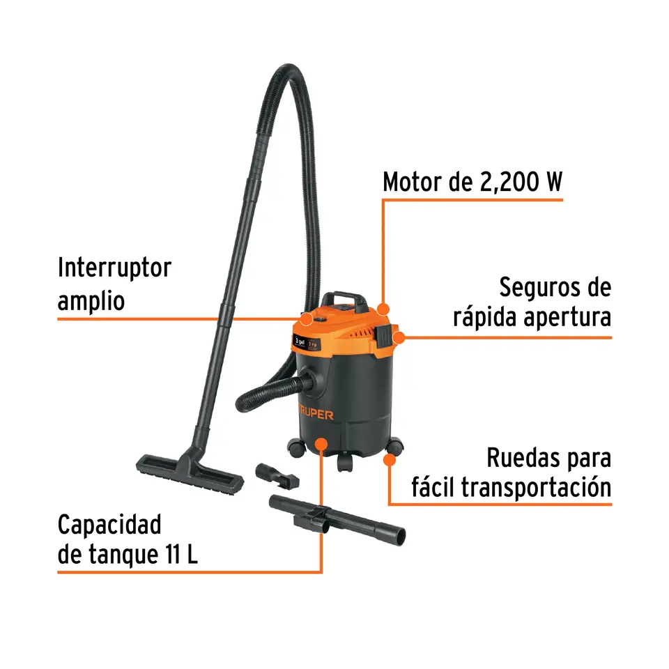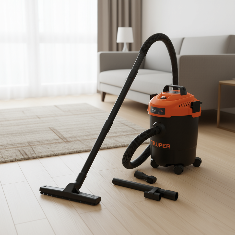 Aspirapolvere Truper per Solidi e Liquidi da 3 Galloni con Filtrazione HEPA, Potenza Elettrica 1200W, Funzione di Autopulizia, Acciaio Inossidabile B