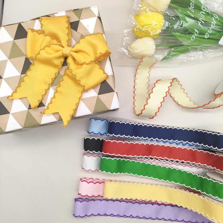 1 "commercio all'ingrosso personalizzato del nastro del bordo del punto della luna onda smerlato del nastro del gros grain Multi colori dell'arco fatto da te festa del regalo del rotolo del nastro della decorazione del regalo