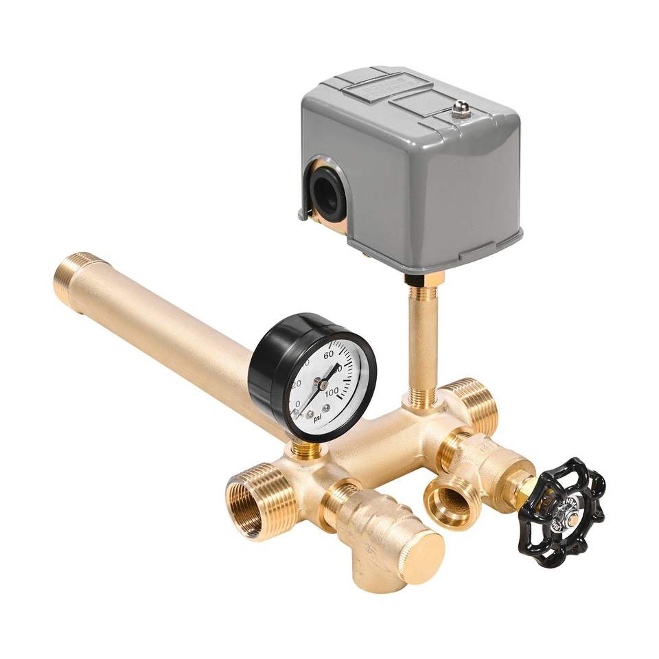 Kit di installazione per irrigazione in ottone puro da 7 pezzi con serbatoio a pressione a 11 vie e interruttore 40/60 PSI per pozzi F