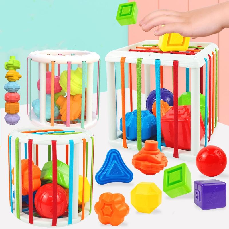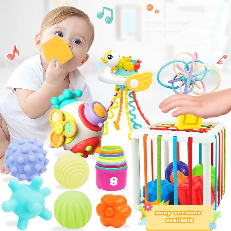 1 Year Old Montessori Toys Sensory Toys Babies Stacking Sorting Color Shape Silicone Pull String Activity Toys