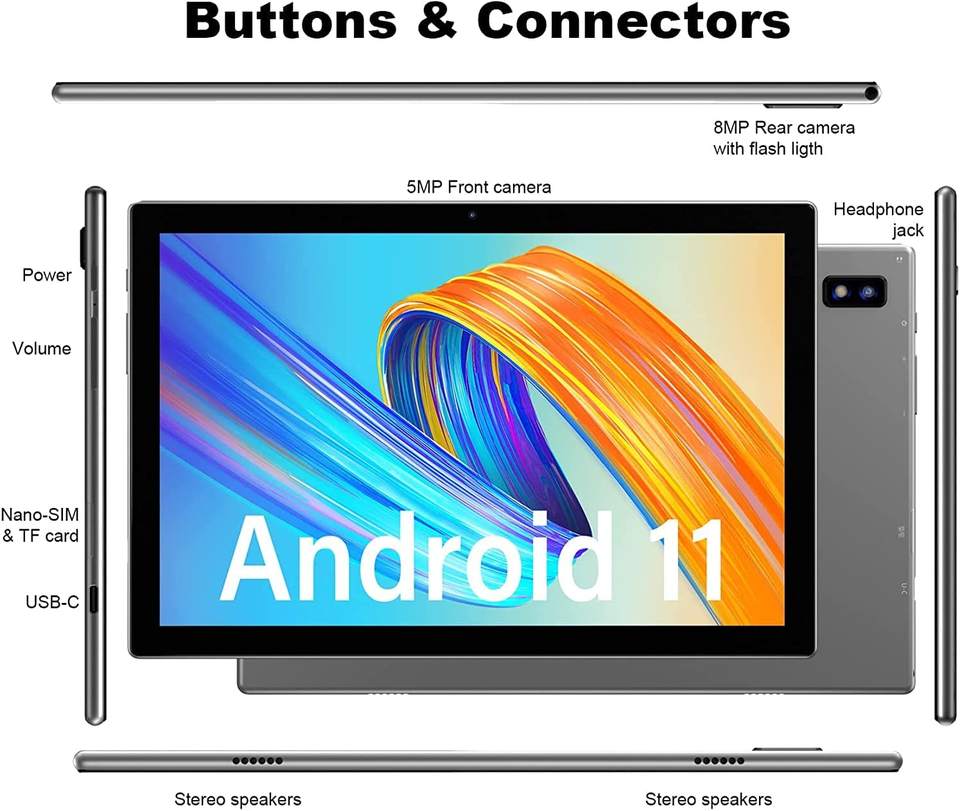 10.1"6GB RAM+128GB ROM 4G LTE & 2.4/5G WiFi T616 Octa-Core Chip Tablets for Online Lesson Reading Computer Tablet Black