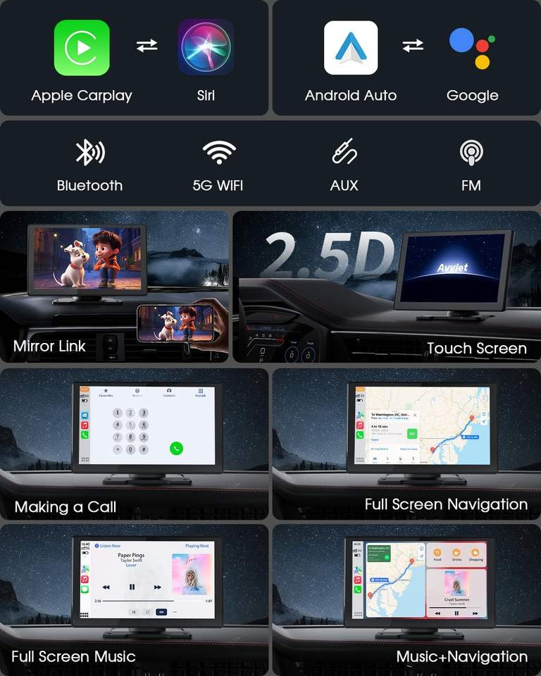 Features:wireless carplay/android auto/MP4/5/Voice control/BT/FM/mirrorlink