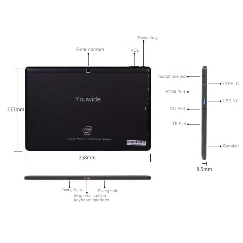 Tablet PC da 10.1 Pollici con Sistema Operativo Windows 10, Quad-core, Schermo IPS Touch a 10 Punti, Supporto Wi-Fi, 4GB 64GB, Intel N3350/N4120/Z8350