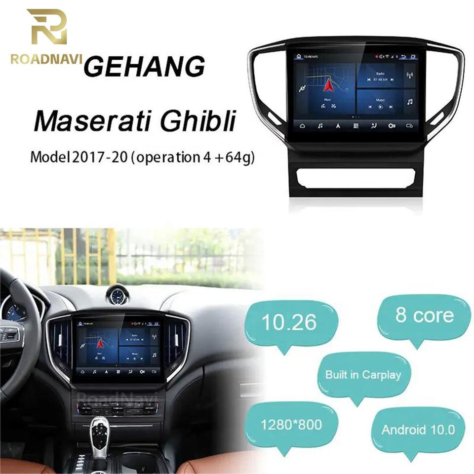 Autoradio Android RoadNavi da 10.26 Pollici per Maserati Ghibli 2014-2020, Lettore Multimediale per Auto con Carplay Wireless, 4G, 360