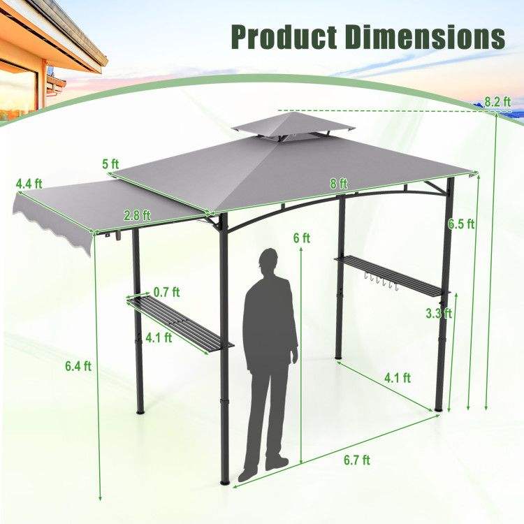 Gazebo a Doppio Livello 10.5 X 5 FT con Tettoia Laterale, Tenda Resistente e Pergola