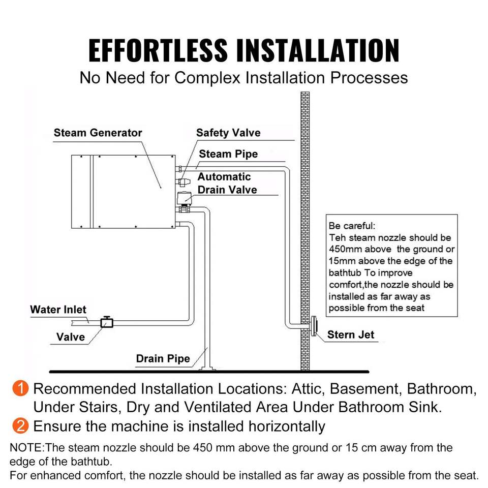 Generatore di Vapore per Doccia Automatico da 10,5 kW con Drenaggio, Timer 24h, Riscaldamento a Segmenti e Personalizzazione della Temperatura per Bagni