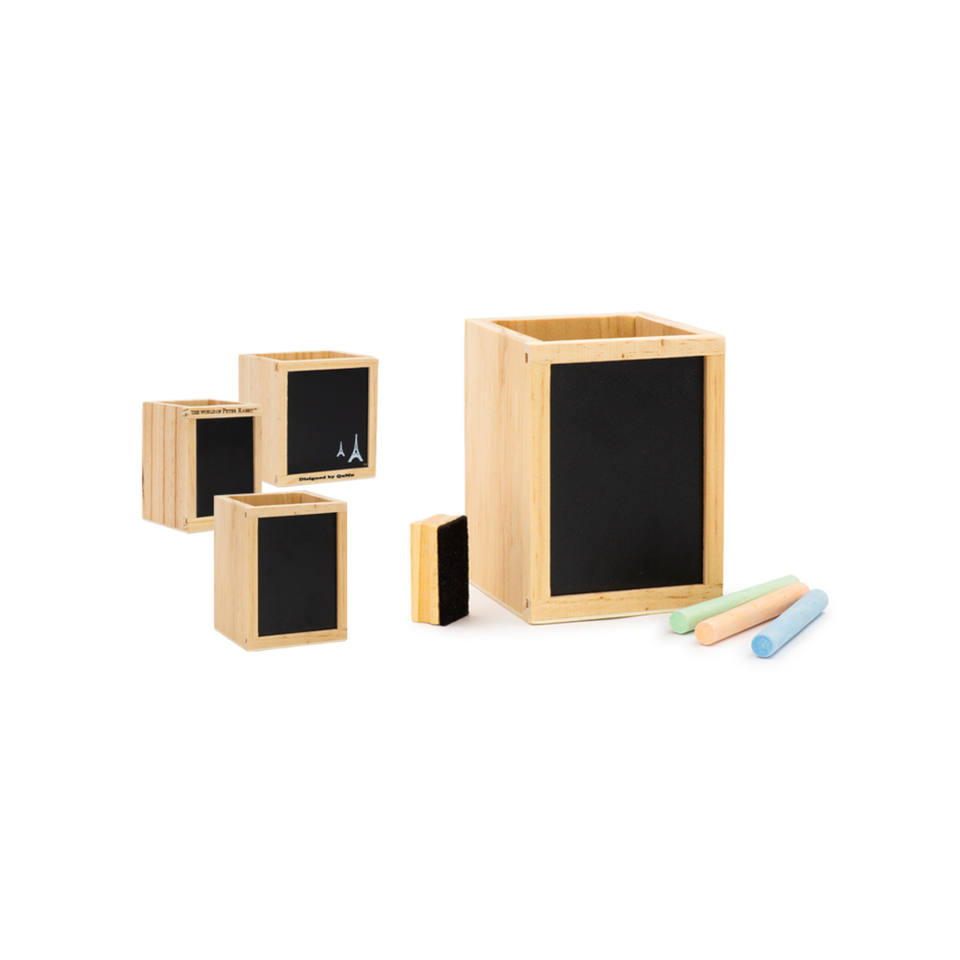 10.5x7.5x6cm Wood Pencil Holder with Eraser and 3 Colored Chalks Desk Organizer for Pen Calendar Square Pattern in Acryl Paper