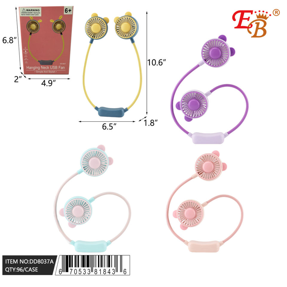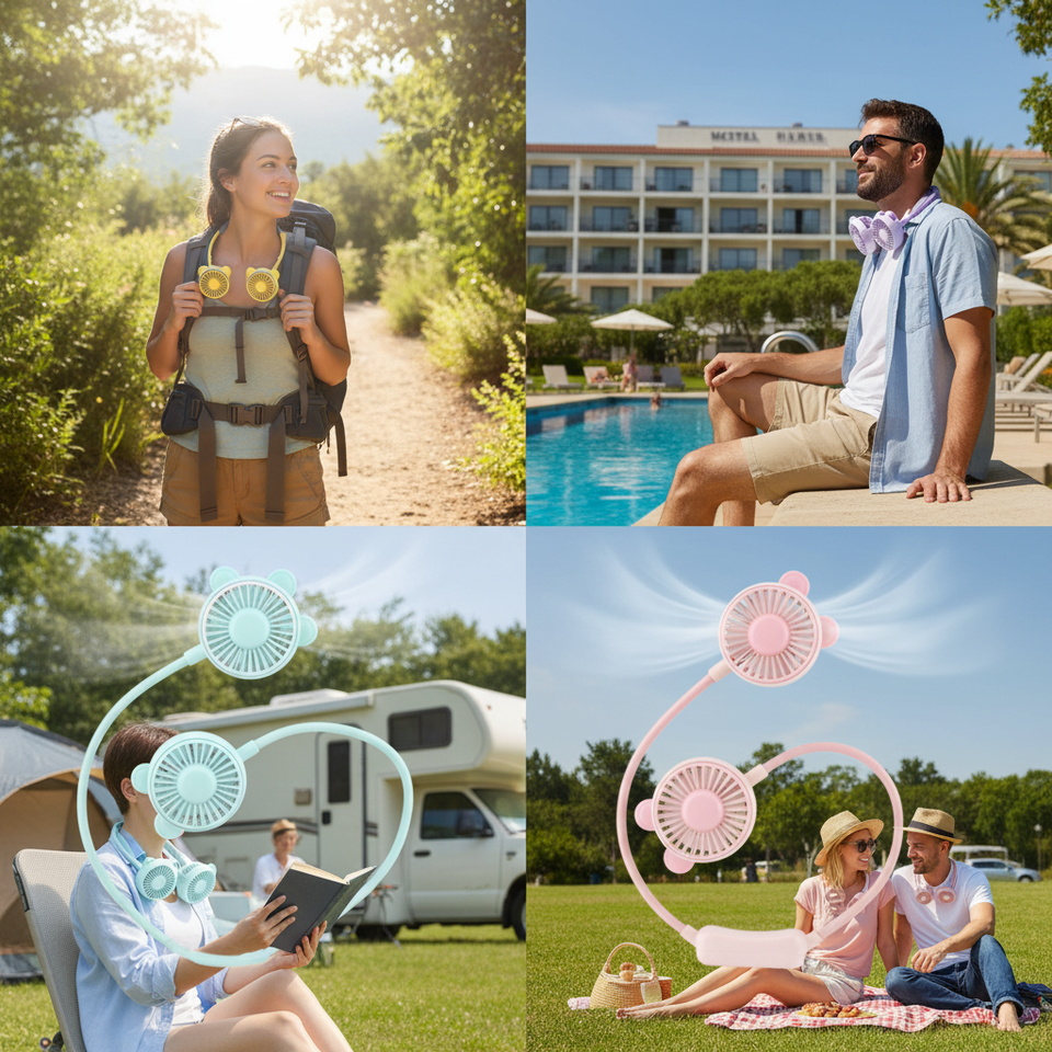 Ventilatore da Collo Mini USB Ricaricabile Senza Pale da 10.6 Pollici con Logo Personalizzato, in Plastica, 96/4/24 Pezzi/Confezione per Esterni, Hotel, Camper (in Inglese e Spagnolo)