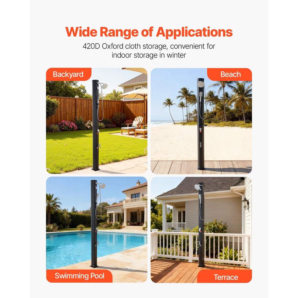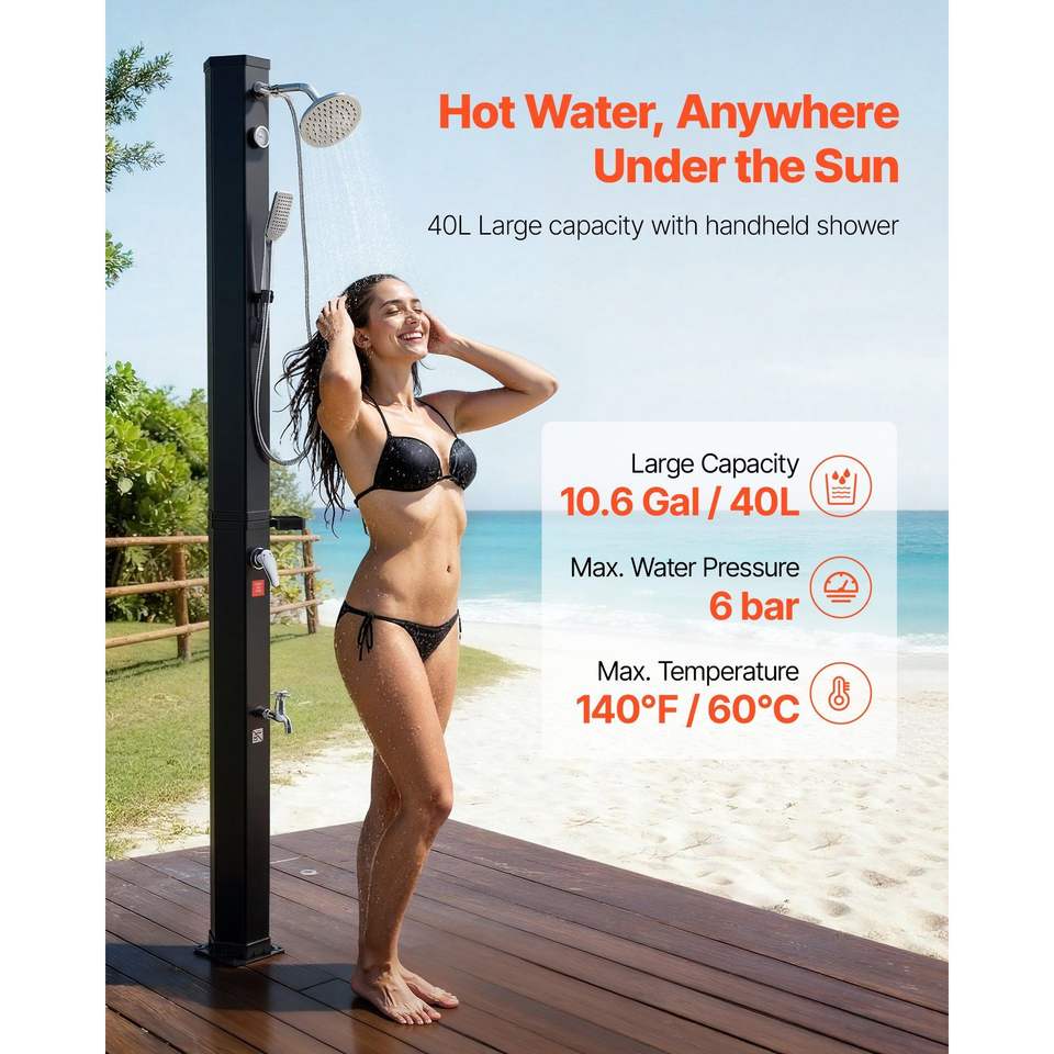 Doccia Solare da Esterno da 10.6 Galloni con Rubinetto a Piede Portatile da 6.7 Piedi di Altezza, Regolazione Acqua Calda e Fredda