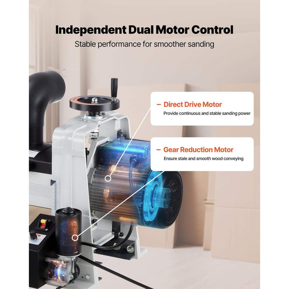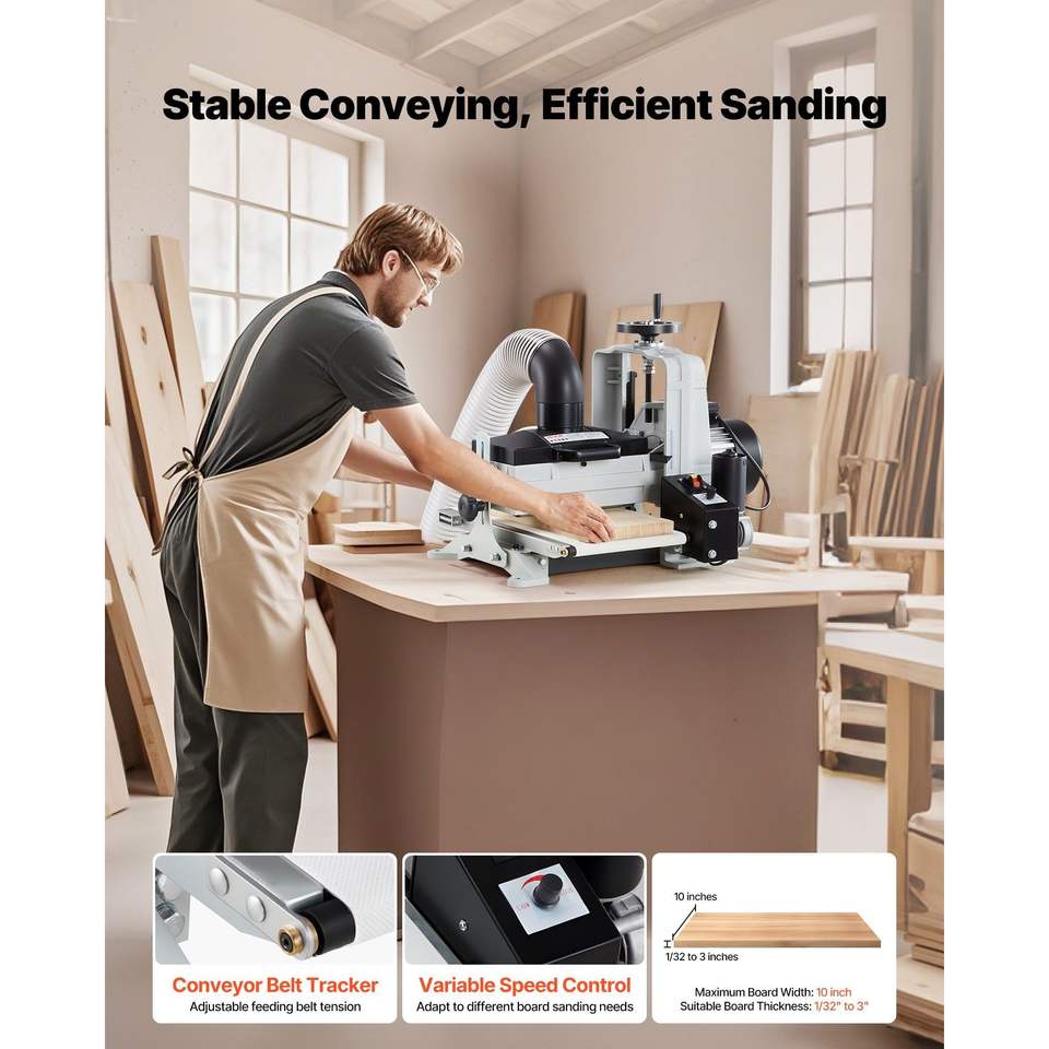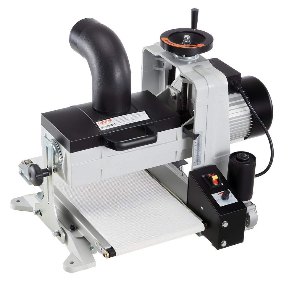Levigatrice a Tamburo da Banco a Doppio Motore 10 Pollici, 1HP 1725RPM, Velocità Variabile, Nastro Trasportatore per Raccolta Polvere 4 Pollici, Macchinario per Lavorazione del Legno