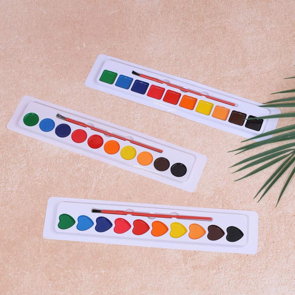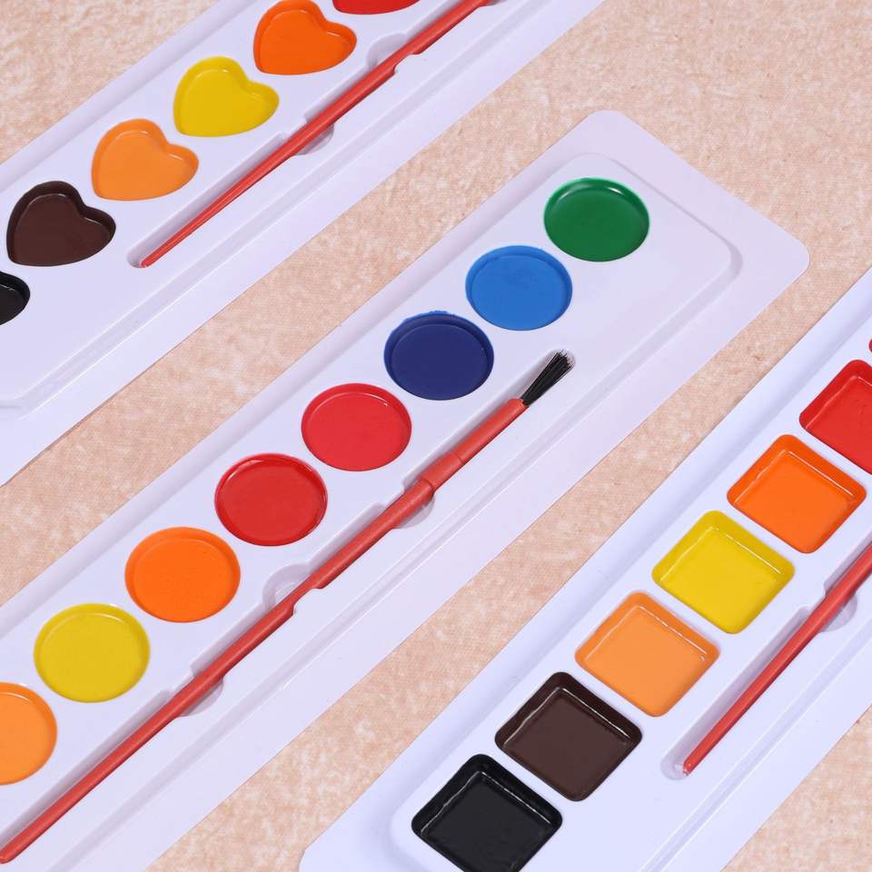 Set di 10 Colori di Acquerelli Solidi per Bambini, Set di Pigmenti per Pittura in Forme a Cuore, Rotonde e Quadrate