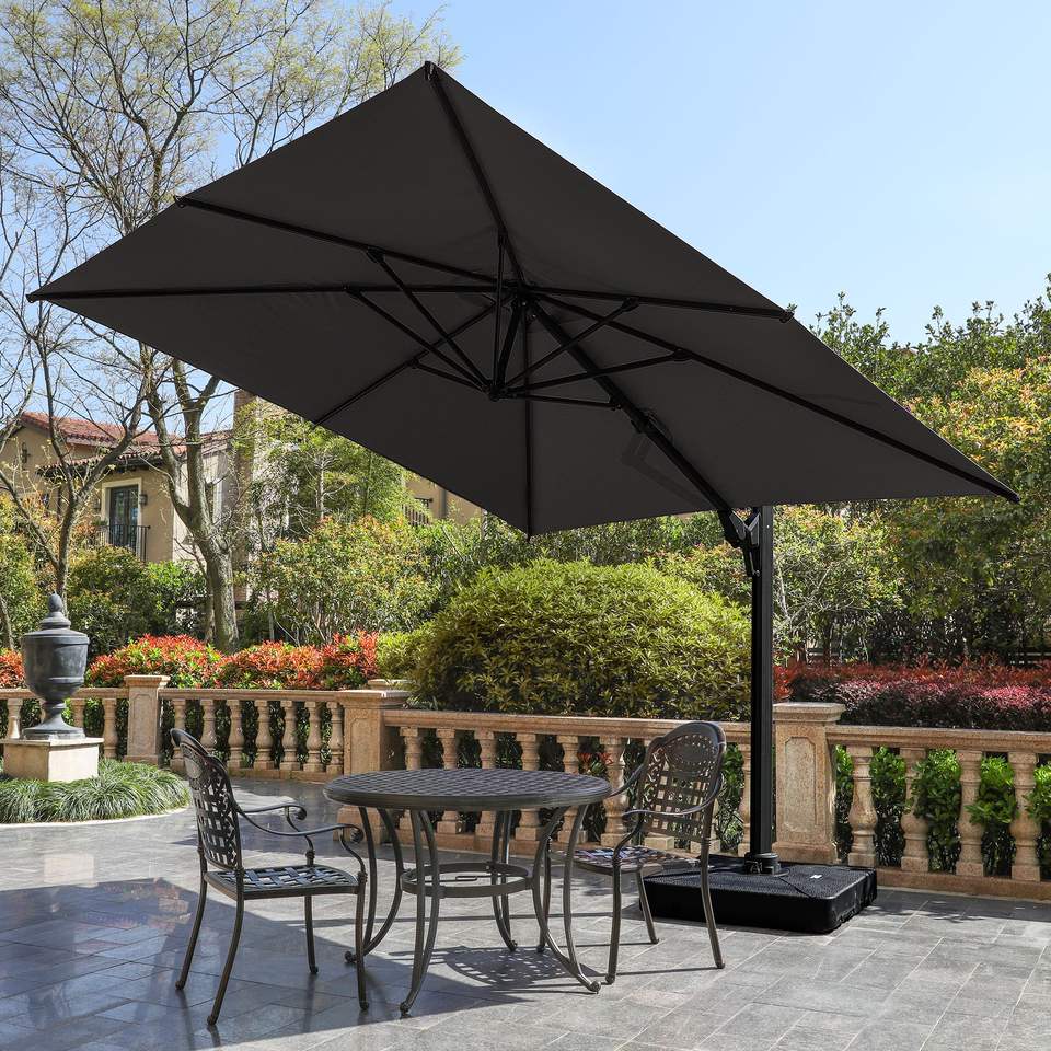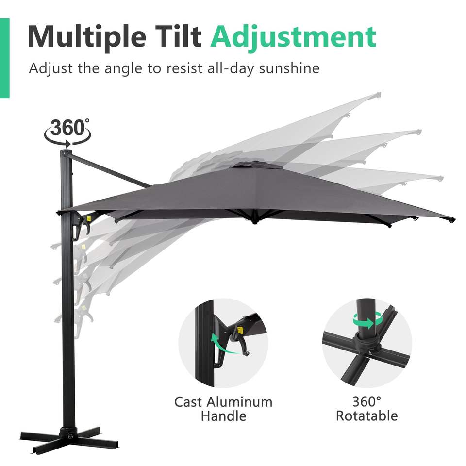 10 FT Cantilever Patio Umbrella with 360 Degrees Rotation & Tilt Adjustment Square Outdoor Offset Umbrella on Aluminum Grey Pole