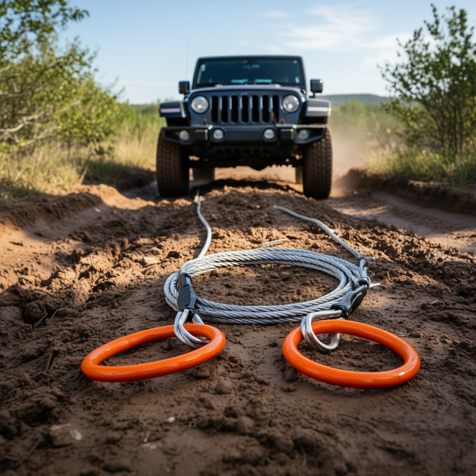 Log Choker Cable 10 Feet Steel Gray With Tow Ring Ratchet Buckles For Vehicle Recovery Off Road Use