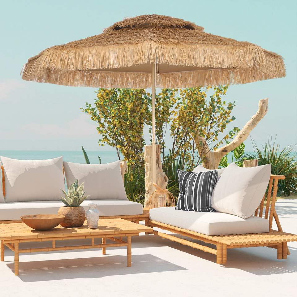Ombrellone da Esterno Hula Thatched Tiki da 3 Metri con 8 Stecche, Protezione UPF30+, per Giardino, Cortile, Terrazza, Piscina, Aspetto Naturale
