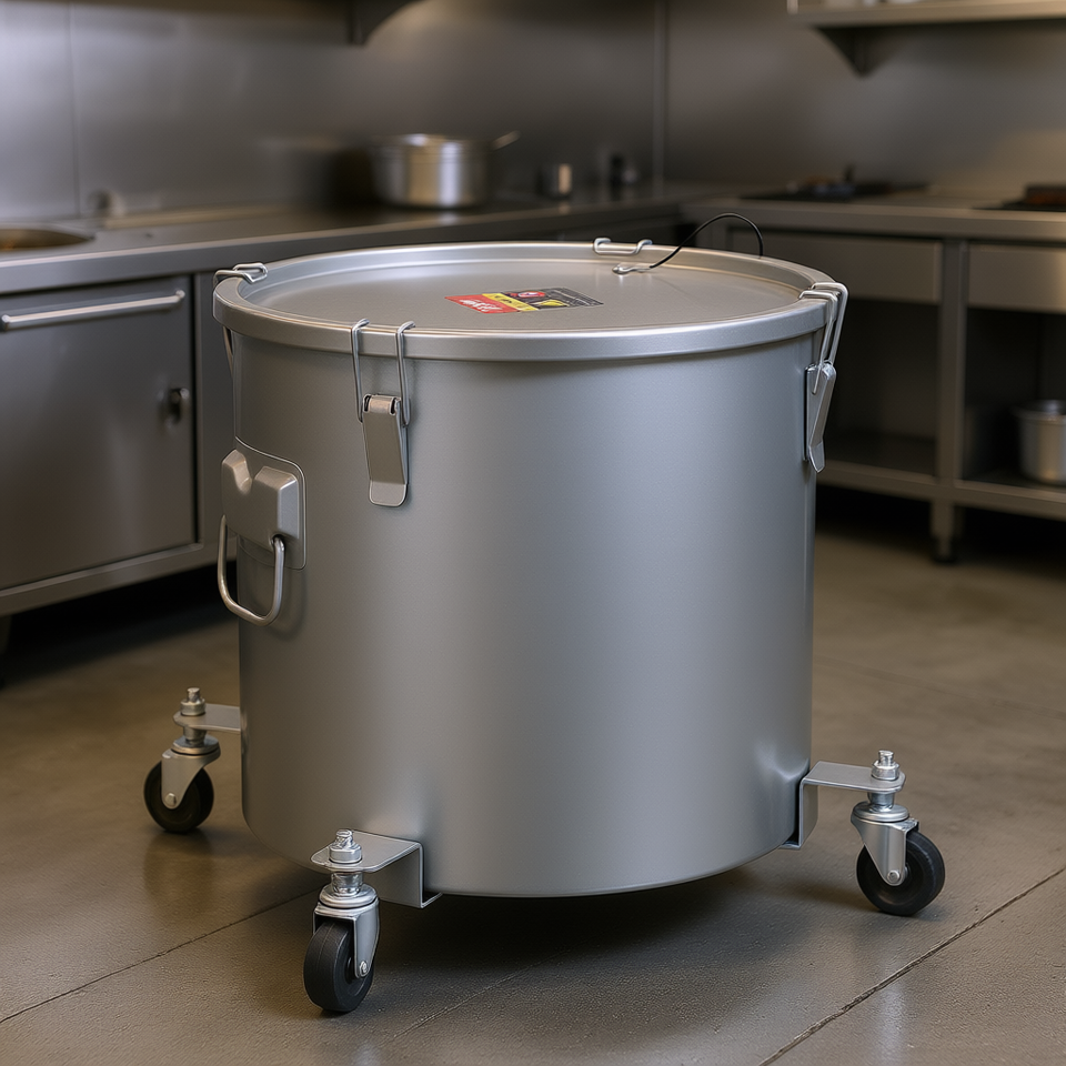 10 Gallon Carbon Steel Grease Bucket With Caster Base Lid Lock Clips For Commercial Oil Disposal