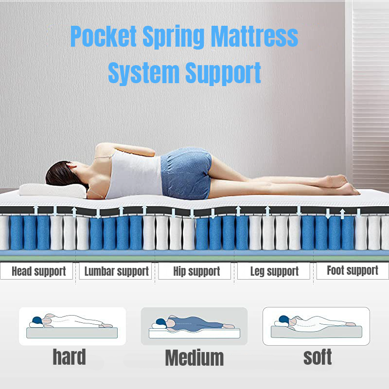 Materasso a molle insacchettate da 10 pollici a fermezza media, arrotolato e pronto per la spedizione, prezzo di fabbrica, materasso ibrido personalizzato per negozi online