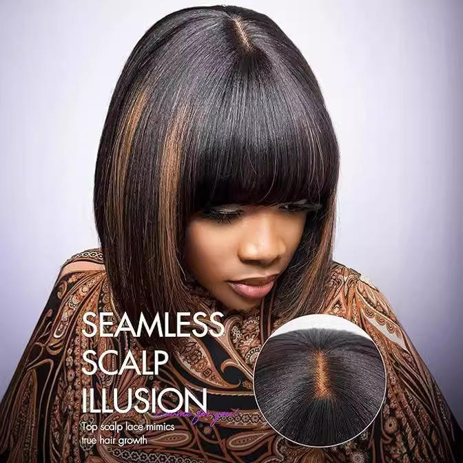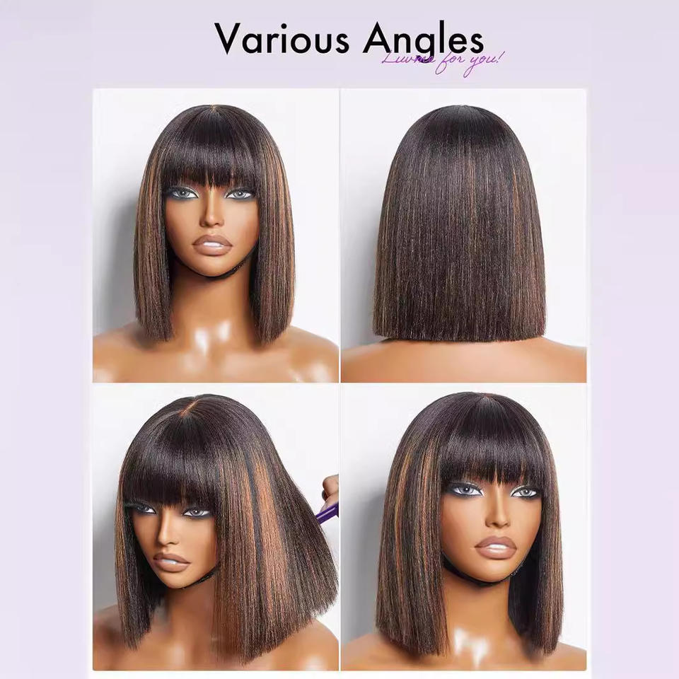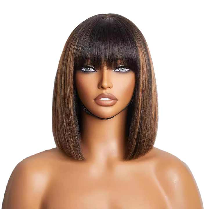 Parrucca Liscia Bob da 10 Pollici Senza Colla con Frangia Ordinata, Corta, Marrone, Realizzata a Macchina, per Vendita all'Ingrosso