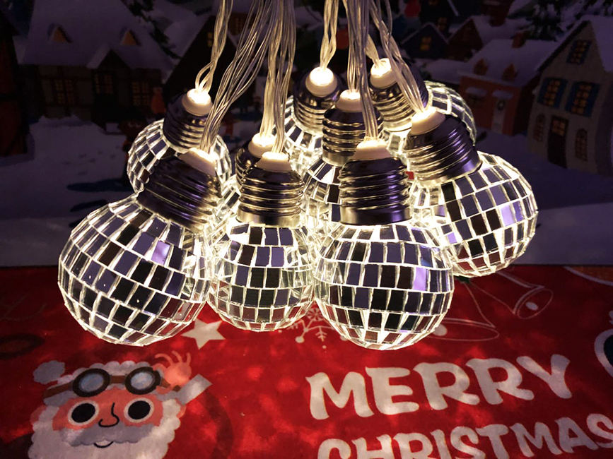 10 LED Disco sfera specchio festa stringa di luce per interni all'aperto di natale lanterna vacanza muro albero April giorno dello sciocco Ramadan