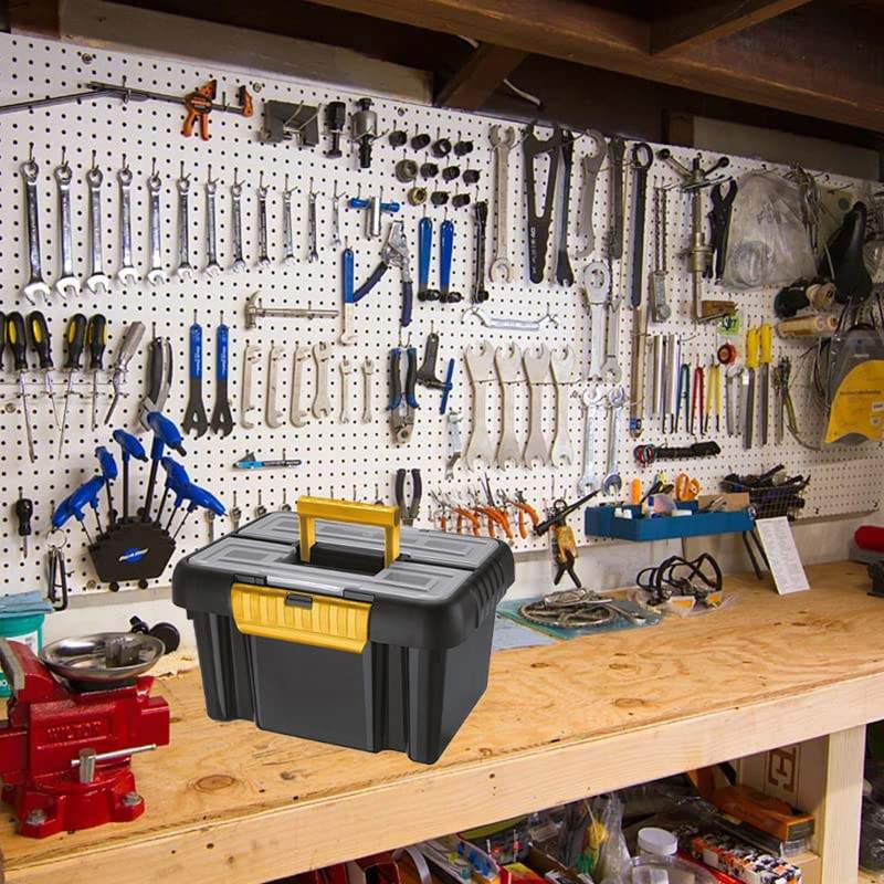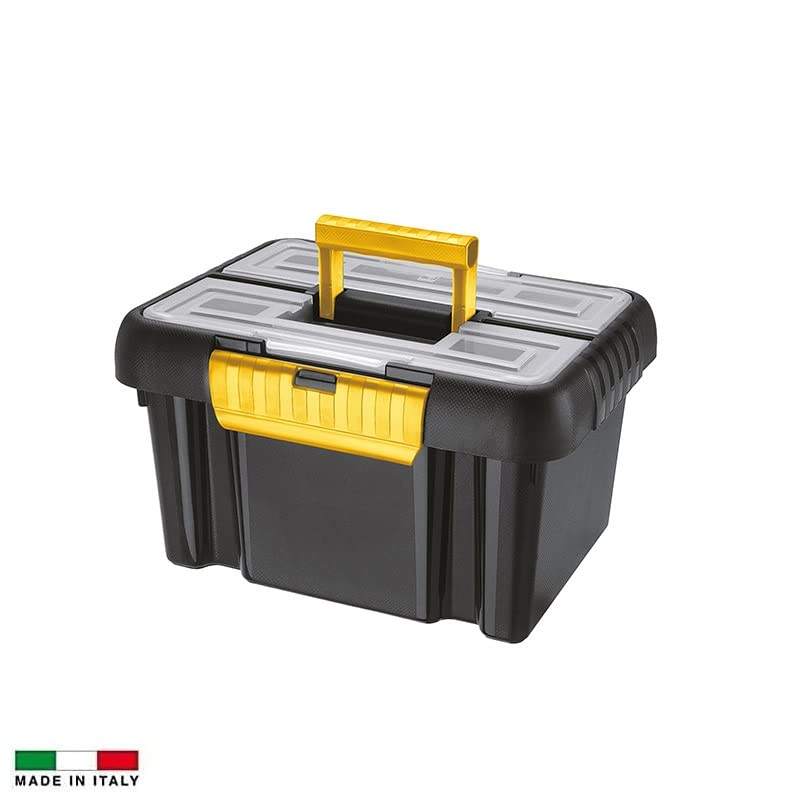 Cassetta degli attrezzi da 10 litri in plastica dura nera con coperchio e scomparti misura 35.5X26X20 cm