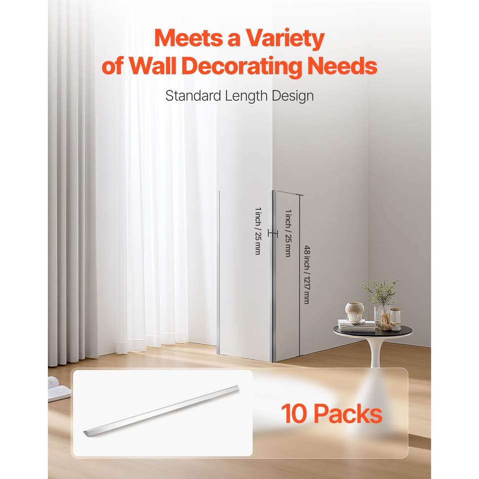 Confezione da 10 Protezioni Angolari in Acciaio Inox 304, 1 x 1 x 48 Pollici, Protezioni per Bordi a 90 Gradi, Finiture Metalliche per Angoli di Pareti