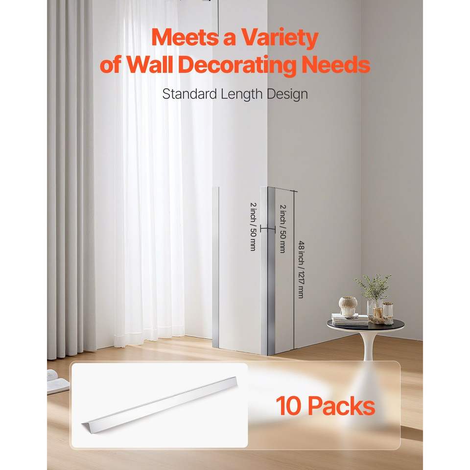 Confezione da 10 Protezioni Angolari in Acciaio Inox 304, 2 x 2 x 48 Pollici, Protezioni per Bordi a 90 Gradi, Finiture Metalliche per Angoli di Pareti