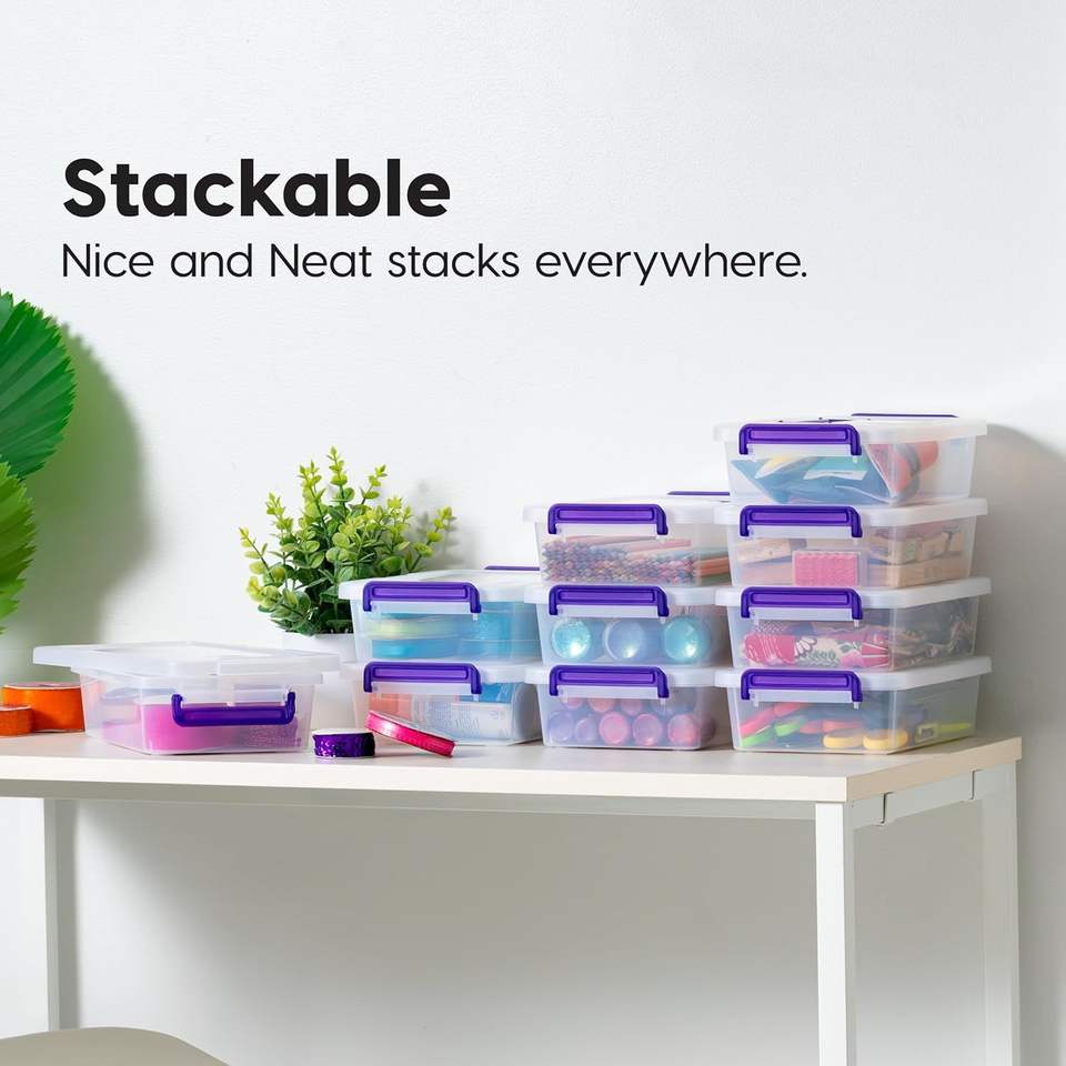 Confezione da 10 da 3 Qt. Contenitori in Plastica per Artigianato con Coperchi, Piccoli Organizzatori per Forniture Artistiche e da Ufficio, Scatole Sensoriali H