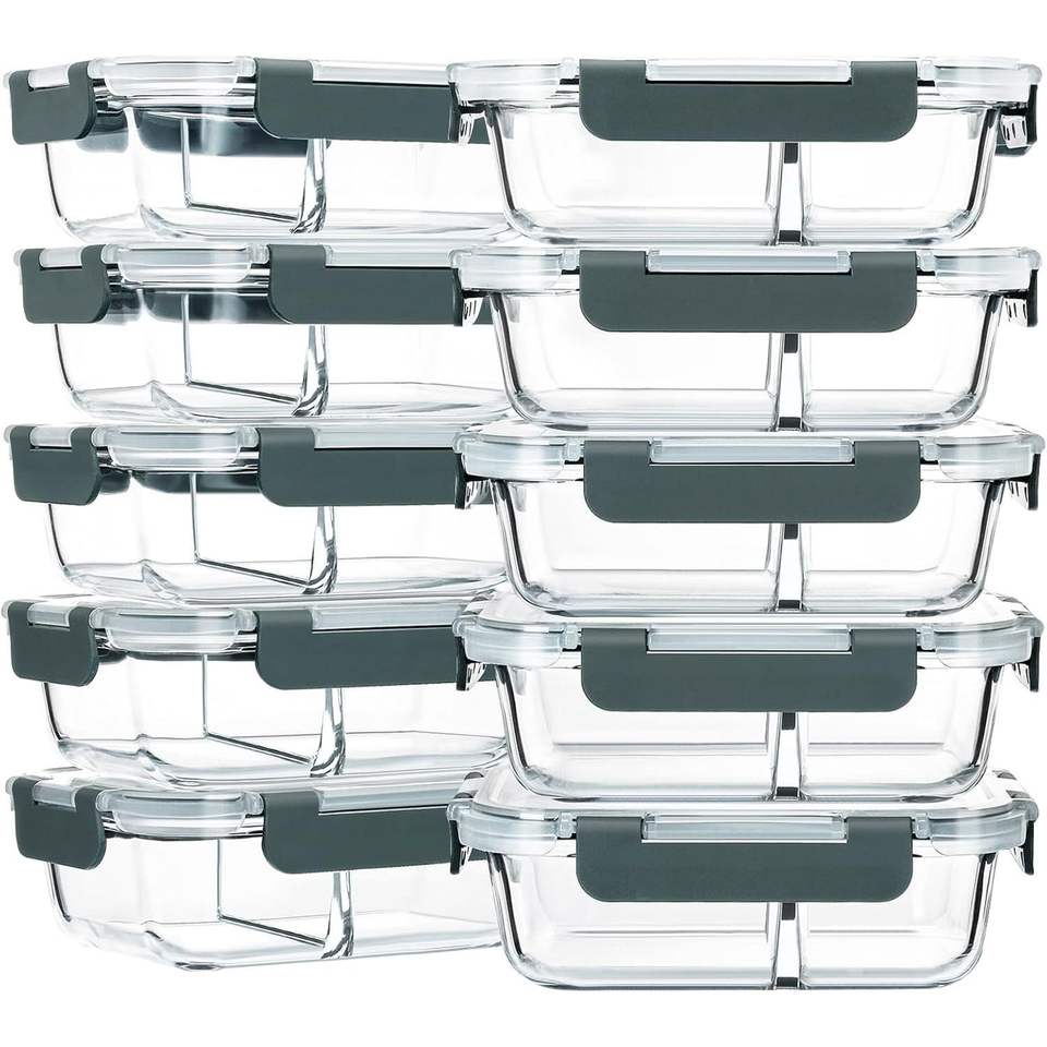 Set di 10 Contenitori in Vetro da 30 oz per Preparazione Pasti, 2 Scomparti, Ermetici, Scatole Bento con Coperchi, Contenitori per Conservazione Alimenti
