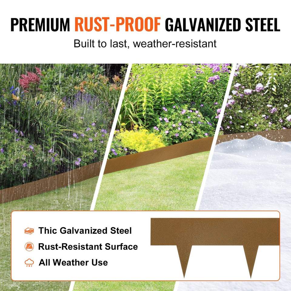 Set da 10 Bordure per Giardino in Acciaio da 39,6L x 2H, Bordi Flessibili in Metallo da Inserire a Martello per Prato, per Composizioni Estive da Esterno